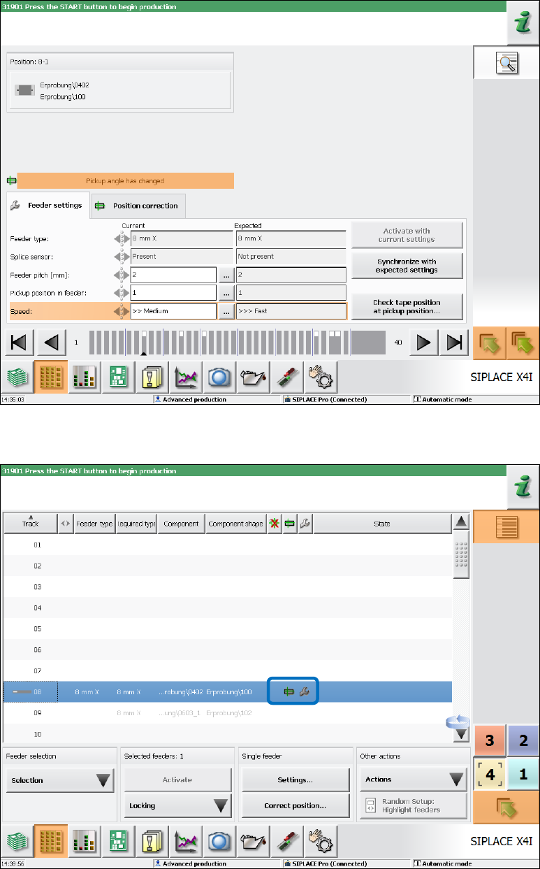 ● Icon / Warning for changed feeder parameters