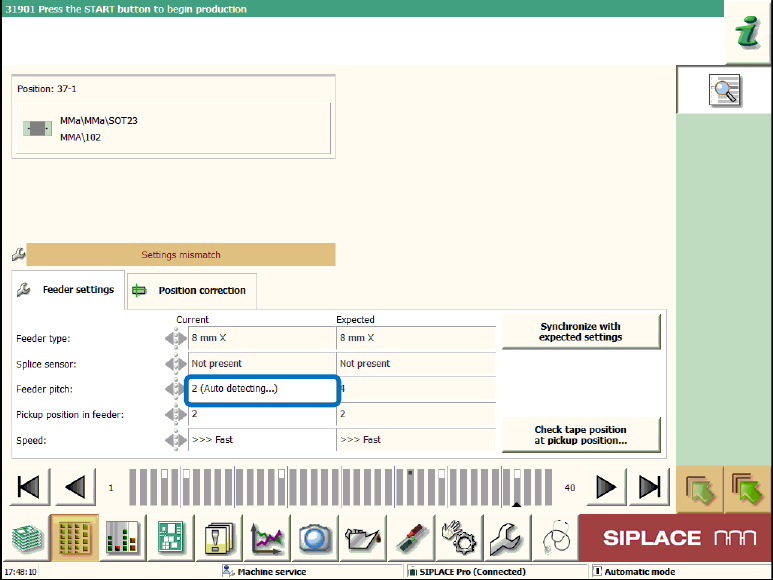 Figure 9-13: Feeder pitch detection enabled