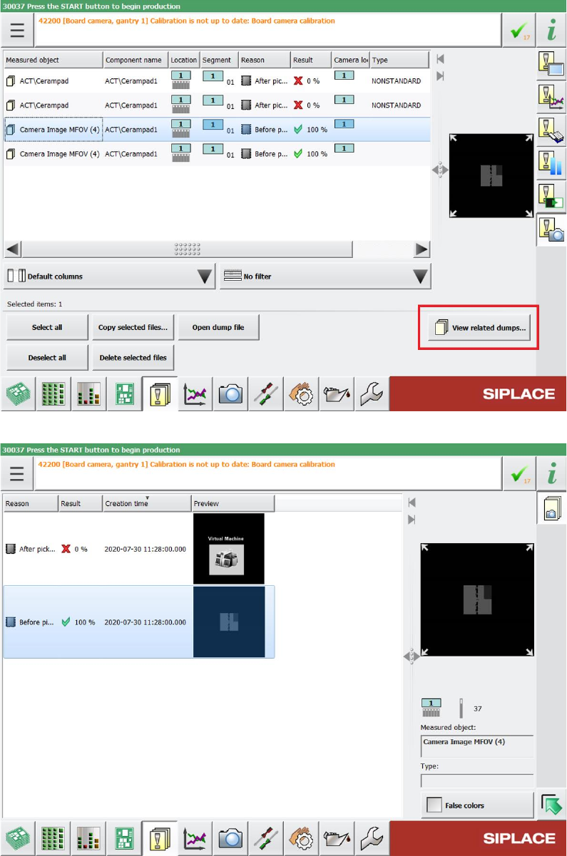 Figure 15-4: Navigating between allocated Vision dump files via View related dumps button