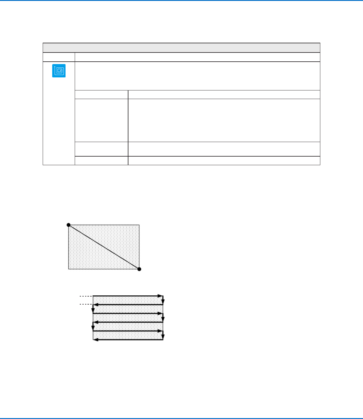 This command fills the defined area by moving the tip along a square, spiral-shaped path from the outside of the rectangle to the