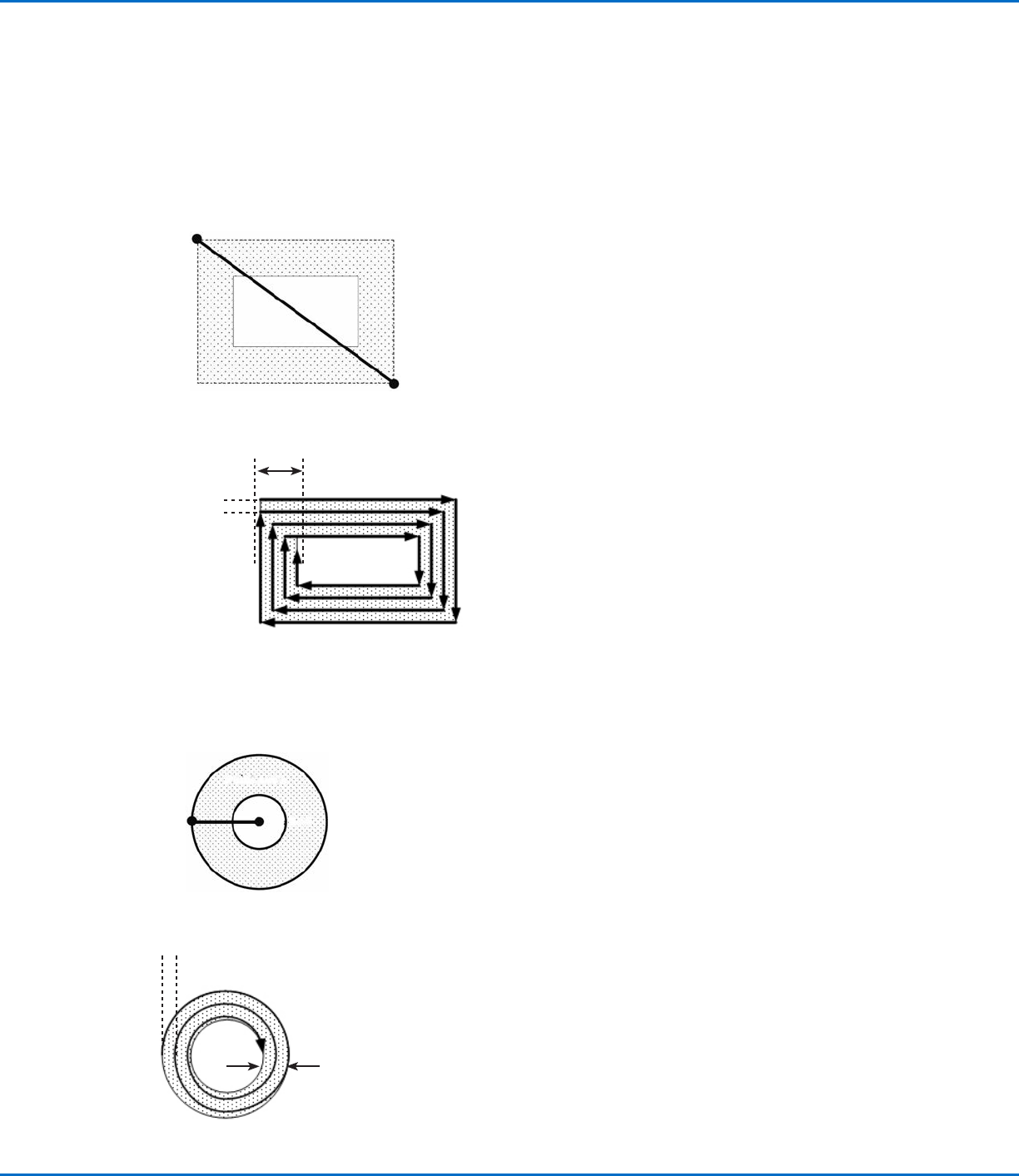 This command fills a rectangular band area by moving the tip along a square, spiral-shaped path from the outside of the rectangle