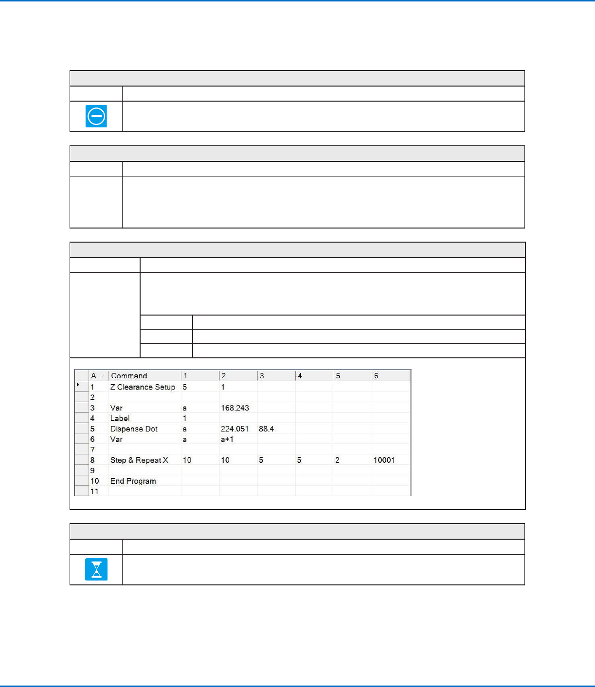 dispensing tip waits at the end point of the previous command for the specified Wait Time (in seconds).