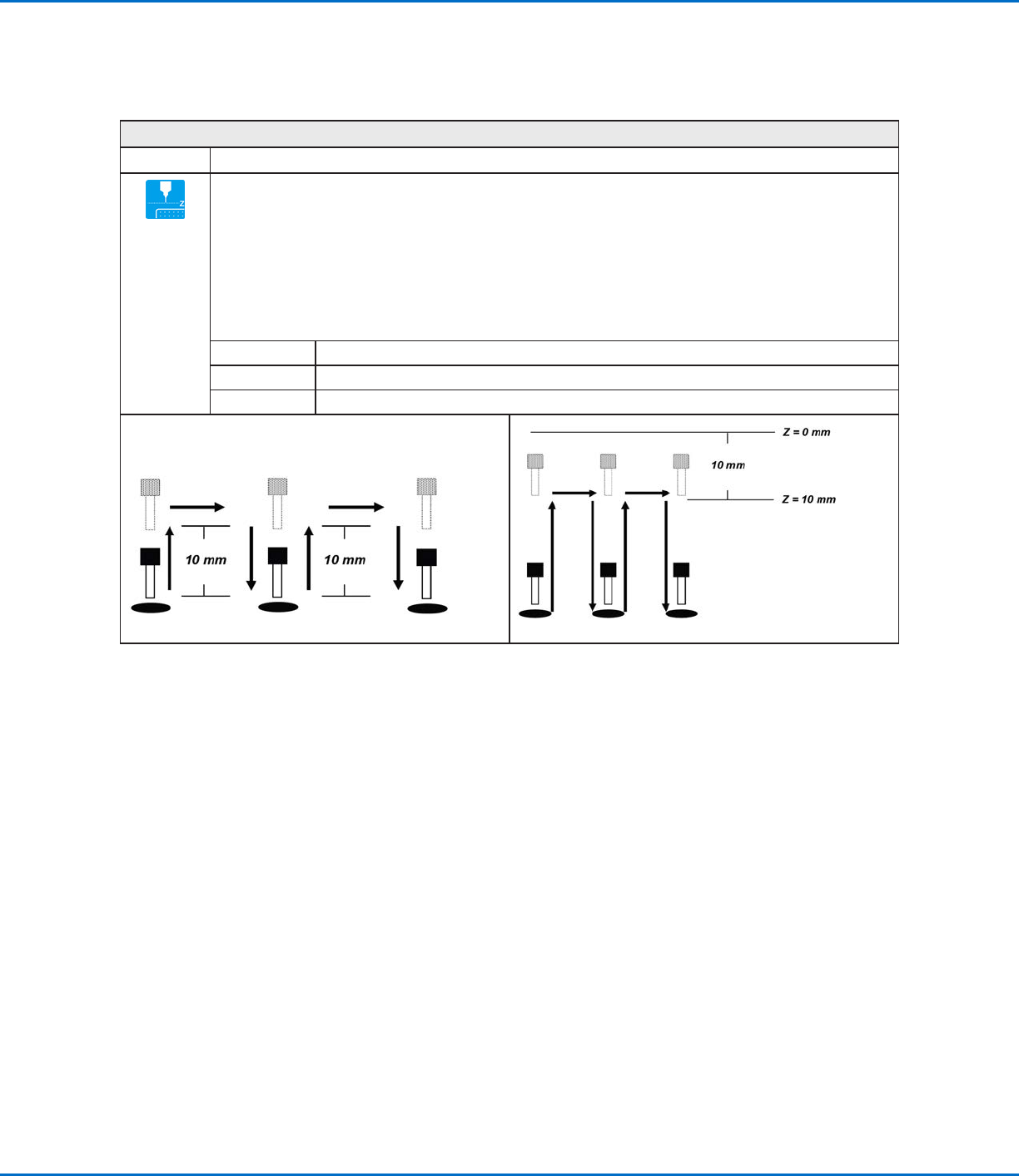 Specifies the height to which the dispensing tip raises after each dispense command. The purpose of Z