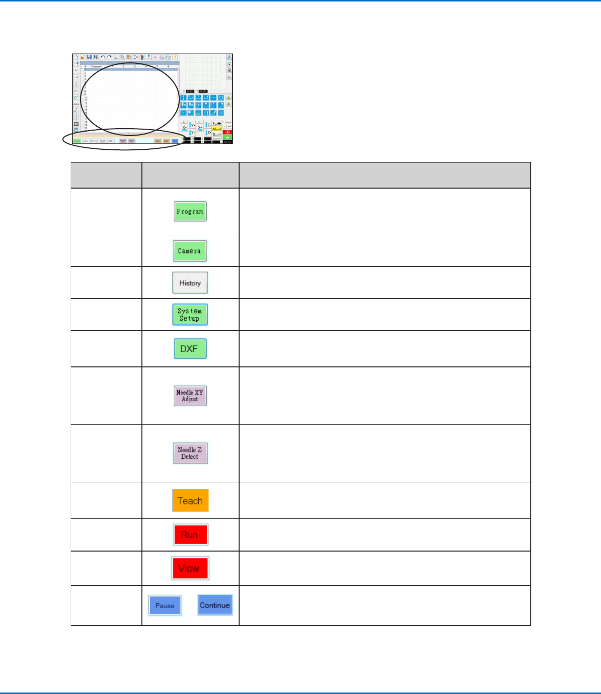 Shows the command view; used to create programs. Right-clicking