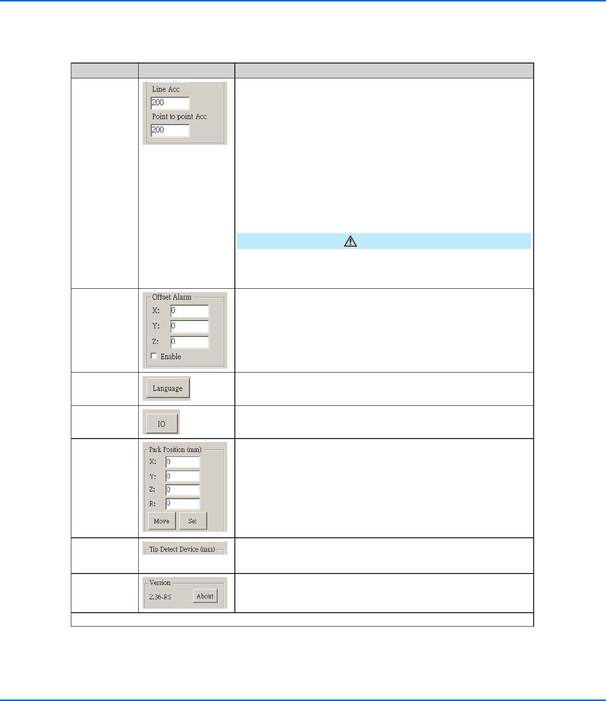 Sets the rate of acceleration for line dispensing (Line Acc) or from point