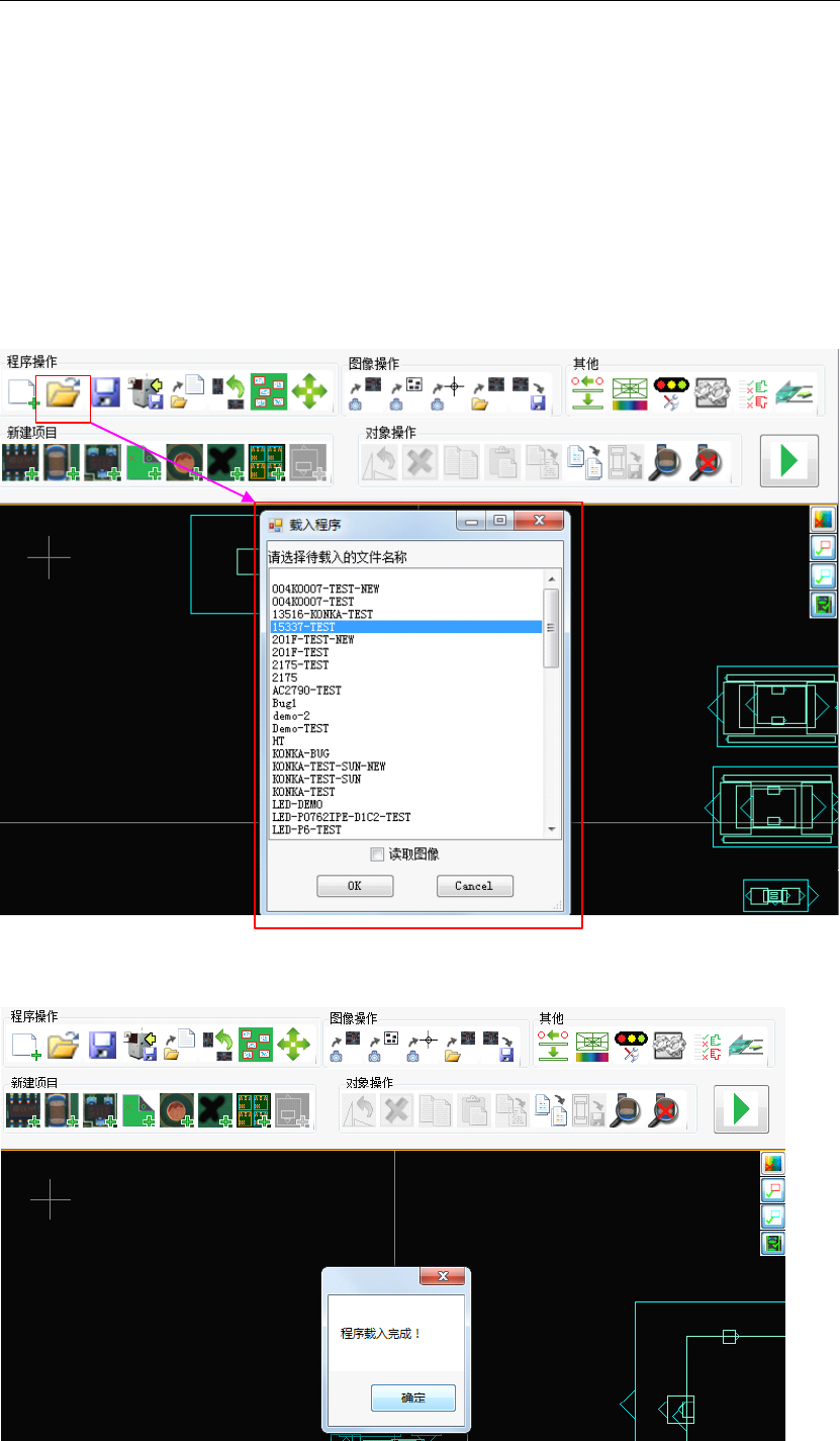 1. 单击 AOI 软件主界面的 “ 读入程序 ” 快捷图标,弹出选择程序的界面,如下