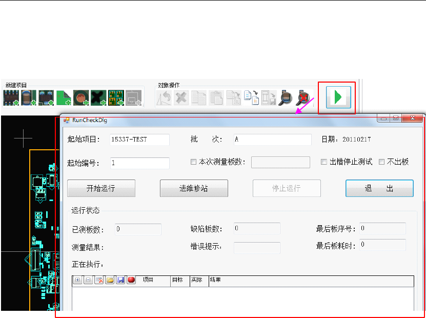 备将板搬入,开始进行测试,测完后设备会自动出板,并自动启动主机自带的维修站软件
