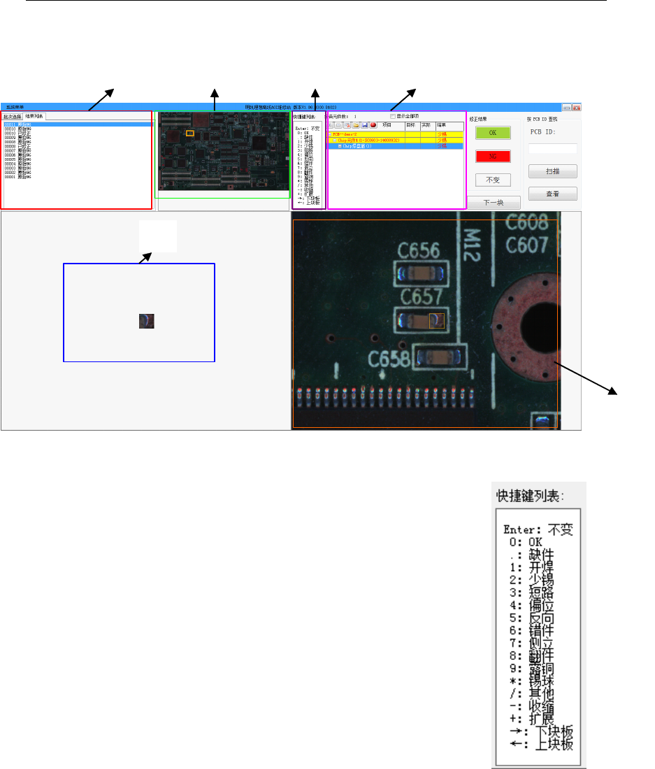 F :不良记录显示区,此处显示报错元件或部位的具体图片( D 中的具