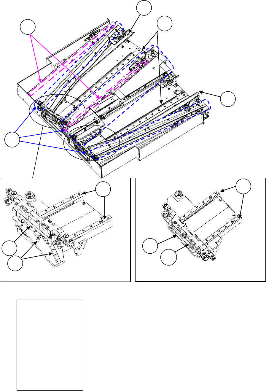 TR 7 DN 使用说明书 4-4 3 5 3 6 4 4 7 7 8 ① Y 轴直动轨 1 ② Y 轴直动轨 2 ③ Y 滑 动直动轨 ④ Y 支 撑直动轨 ⑤ X 滑动直动轨右 ⑥ X 滑动直动轨左 ⑦ 座板副导向卡盘 ⑧ Y 轴 树脂导轨 1 2