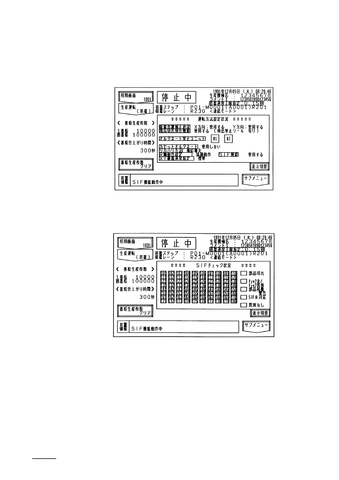 SIF チェック動作中は生産運転画面の装置情報部分に