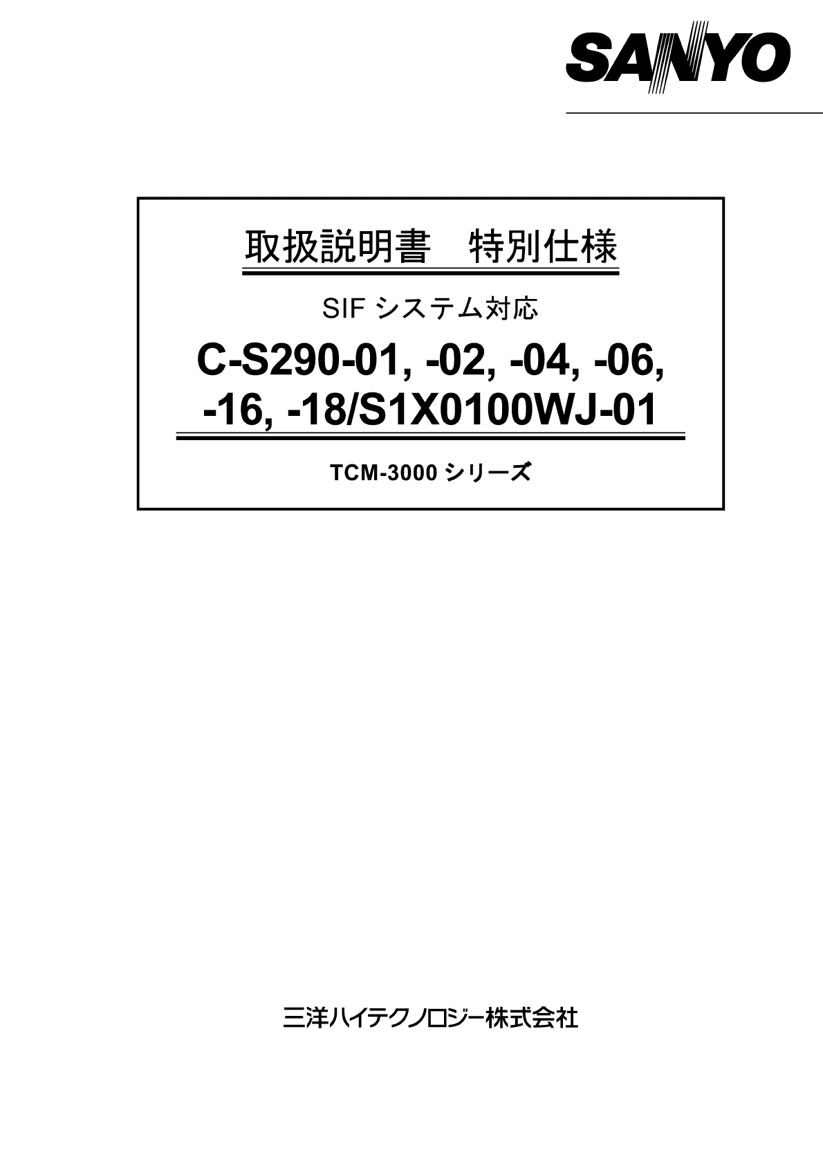 3. 本特別仕様に関するお問い合せは、当社営業部または販売代理店