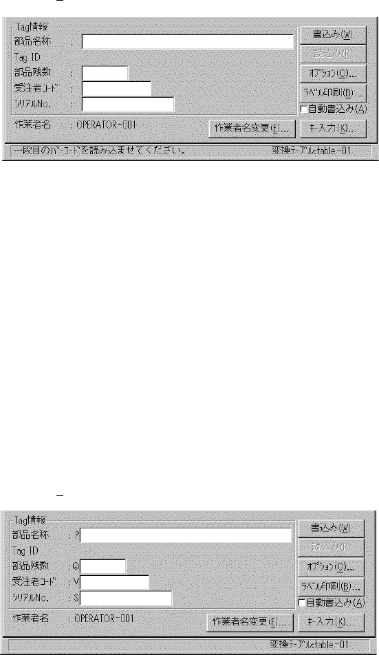 7.5.2 7.5.2 7.5.2 7.5.2 7.5.2 バー バー バー バー バー コードスキャナによるデータ入力 コードスキャナによるデータ入力 コードスキャナによるデータ入力 コードスキャナによるデータ入力 コードスキャナによるデータ入力 バーコードスキャナでバーコードを読み取ることで、 Tag メモリに書き込ま れるデータ(メイン画面内の [ Tag 情報]の各データ) を入力します。 なお、 モードによりメイン画面の表示が…
