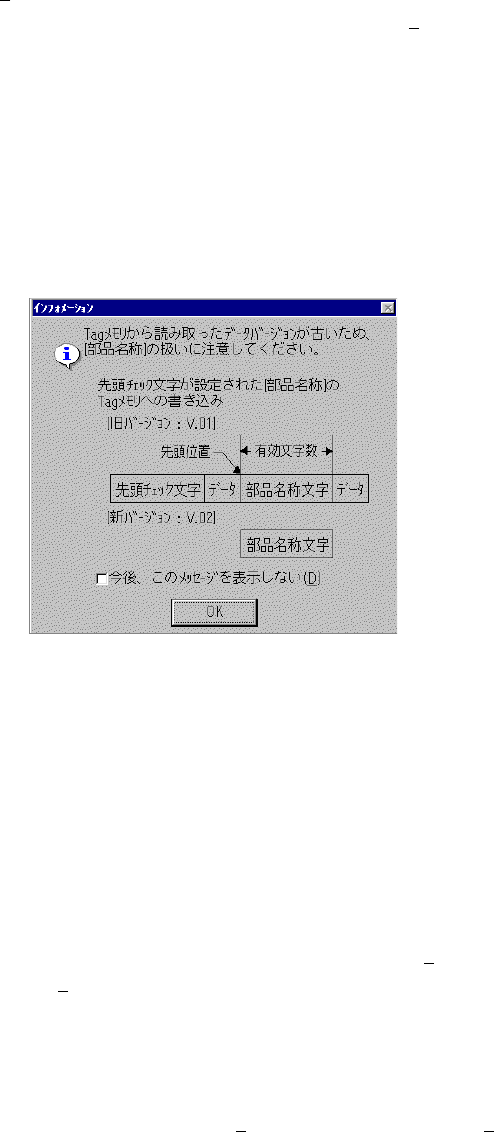 このメッセージは、Tagメモリに書き込まれる“部品名称