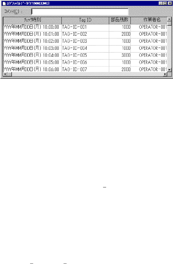 (2) ファイルを選択し[OK]ボタンを押すと、[ログファイルデータ]ダイ