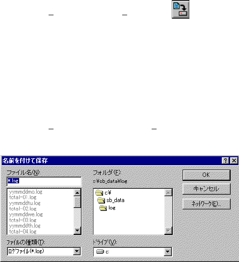 7.8.3 7.8.3 7.8.3 7.8.3 7.8.3 ログファイルを保存する ログファイルを保存する ログファイルを保存する ログファイルを保存する ログファイルを保存する 表示されている [ログファ イルデータ] ダイアログボックスのデータを保存 します。 上書き保存 上書き保存 上書き保存 上書き保存 上書き保存 1つのログファイルデータが表示されていてコメントが編集された状態で一 度も保存されていない場合、 コマンドが有効と…