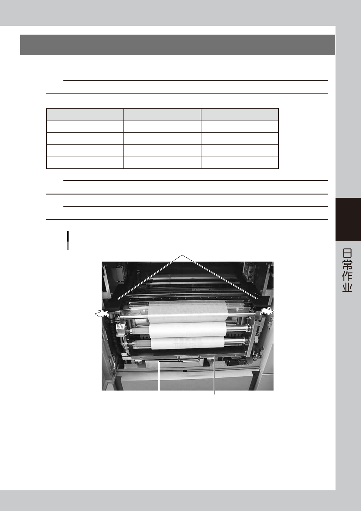 4-7 4 5. 清洁用卷纸的更换 清洁用卷纸已全部卷尽或因切换生产品种需改用不同尺寸的卷纸时,必须按照下列步骤更换卷纸。 c 注意 为防止发生故障,务必使用下表所示的 YAMAHA 原装清洁卷纸。 ■ 清洁卷纸的零部件编号 零部件编号 零部件名 备注 KHT -M3660-00X BENCOT , ROLL 530 卷纸宽 530mm KGY -M3660-A0X BENCOT , ROLL 440 卷纸宽 440mm KGY …
