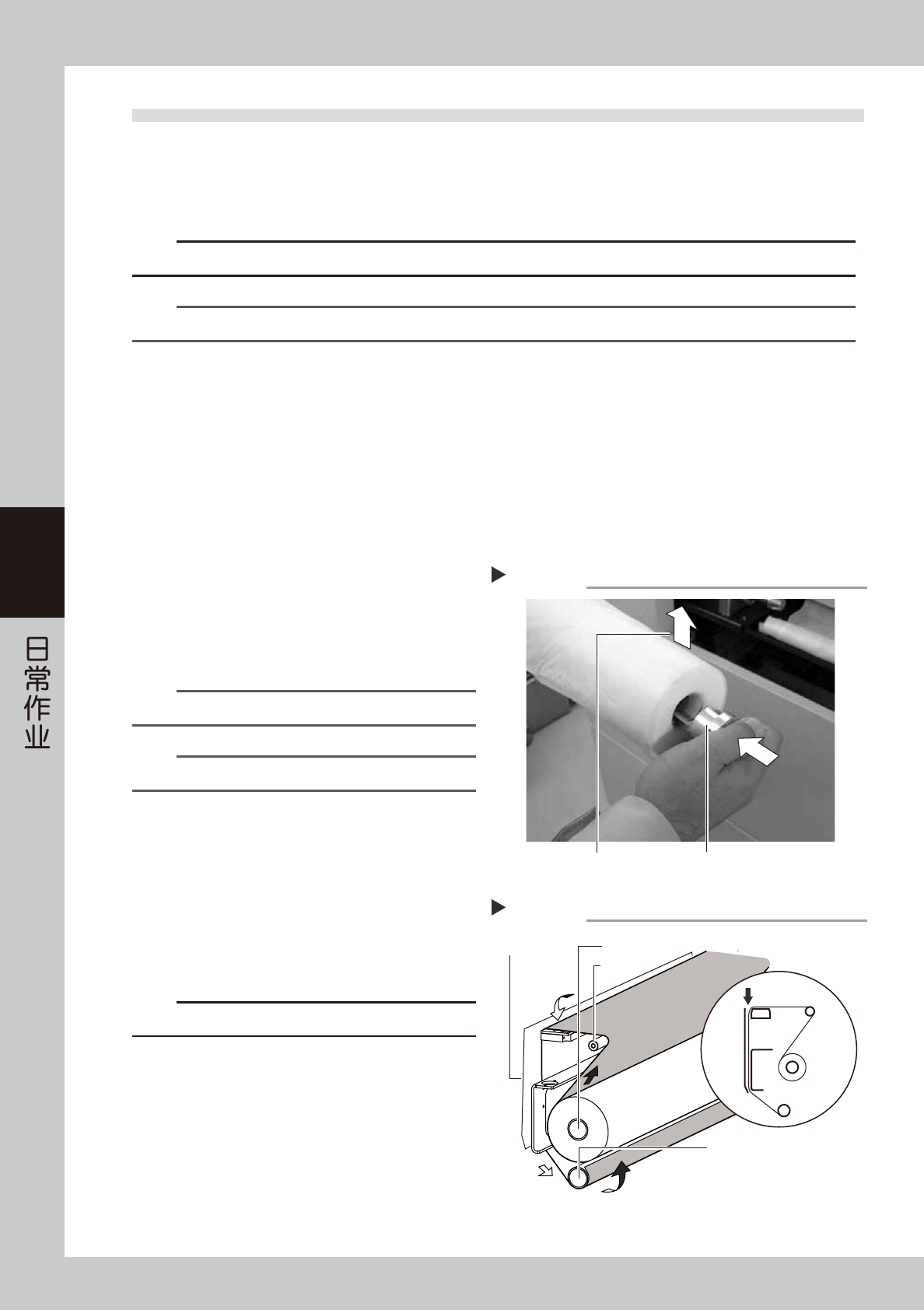 向左按住卷纸,将卷纸嵌入上侧卷轴中。确认卷轴