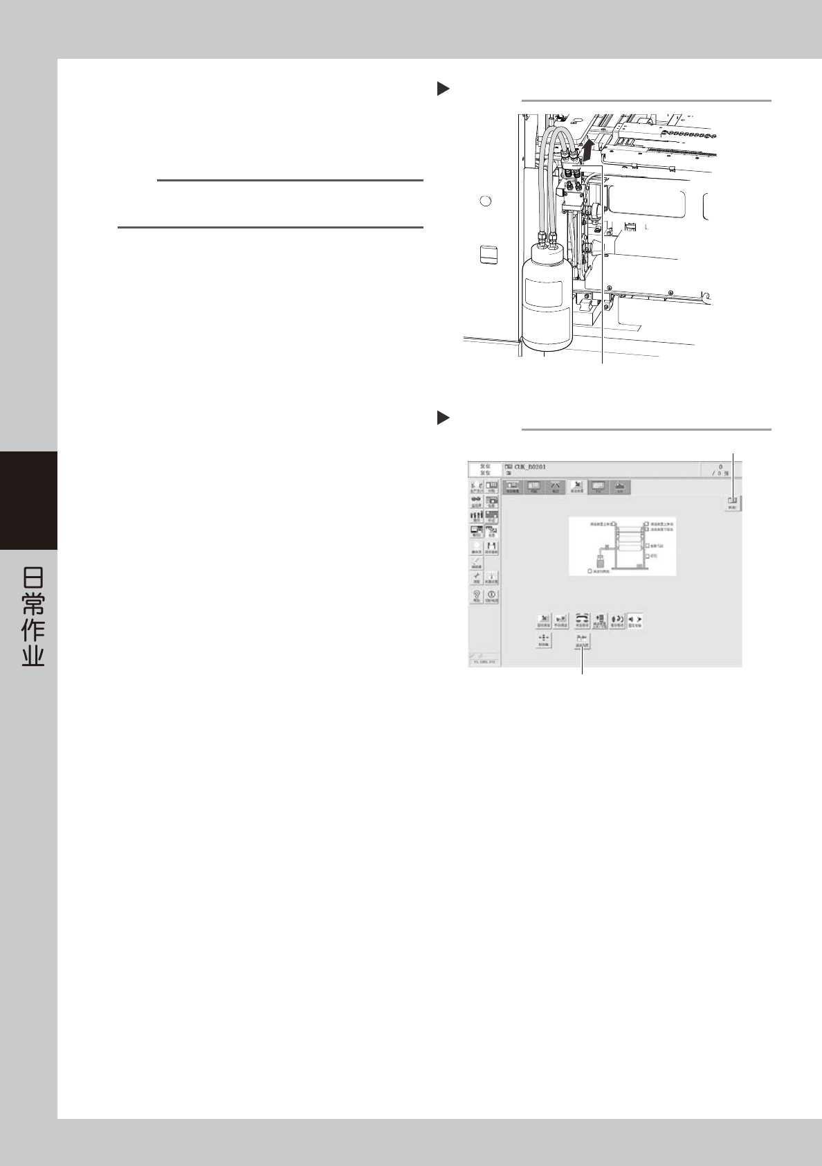 4-13 4 6.3 长时间不使用时 如果长时间 ( 超过约 6 个月 ) 不使用清洁剂泵,清洁剂泵内部会变干燥导致运行不良。为防止该现象发生,必须断 开清洁剂泵的管道。下面,介绍管道的断开方法。 ■ 管道的断开方法 1 拆卸清洁装置的盖板。 1. 先拧松固定清洁装置盖板里侧的 2 颗螺钉 ( 如 右图所示虚线处 ),不必拆下螺钉。 2. 拆下前侧的 4 处螺钉。 3. 将盖板向上提起后再向自己一侧拉出。 65412-N3-00 2 拆…