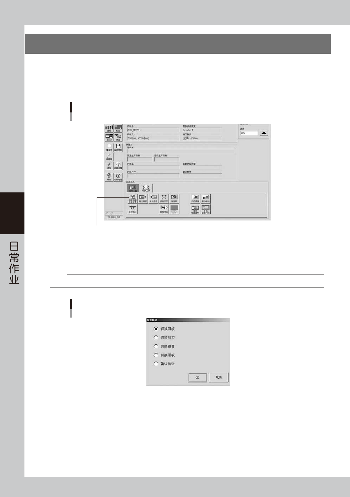 使用 2 条轨道进行生产时,会显示“选择轨道号码”的对话框,选择轨道后按 [OK] 按钮。正在生产的轨道显示为灰色。