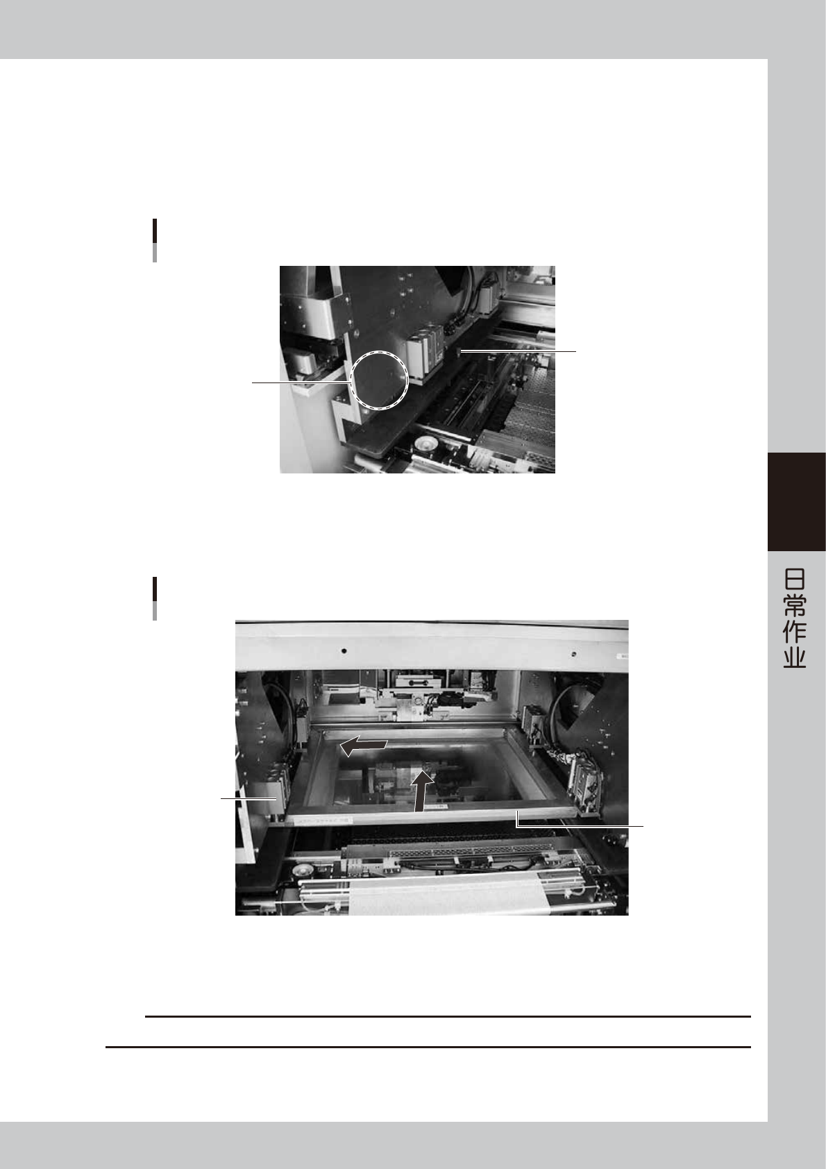 4-14 4 7. 印刷部的安装 将预先准备好的网板固定在印刷部,将刮刀安装在刮刀头上。 1 打开生产设计画面的“切换工具”选项卡。 传送装置的调节在此画面进行。 生产设计画面 “切换工具”选项卡 [调整印刷作业位置]按钮 66408-N3-10 2 按 [ 调整印刷作业位置 ] 按钮。 选择想要操作的项目。 n 要点 使用 2 条轨道进行生产时,会显示“选择轨道号码”的对话框,选择轨道后按 [OK] 按钮。正在生产的轨道显示为灰…