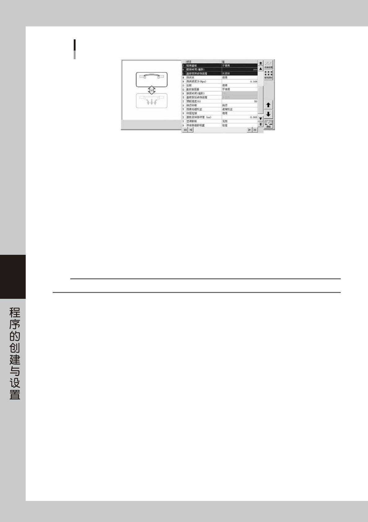 如果“吸附基板”的参数设置为“使用”,需设置吸附时间 ( 毫秒 )。即顶板上升完毕至下一动作开始之间的停顿时间。此功