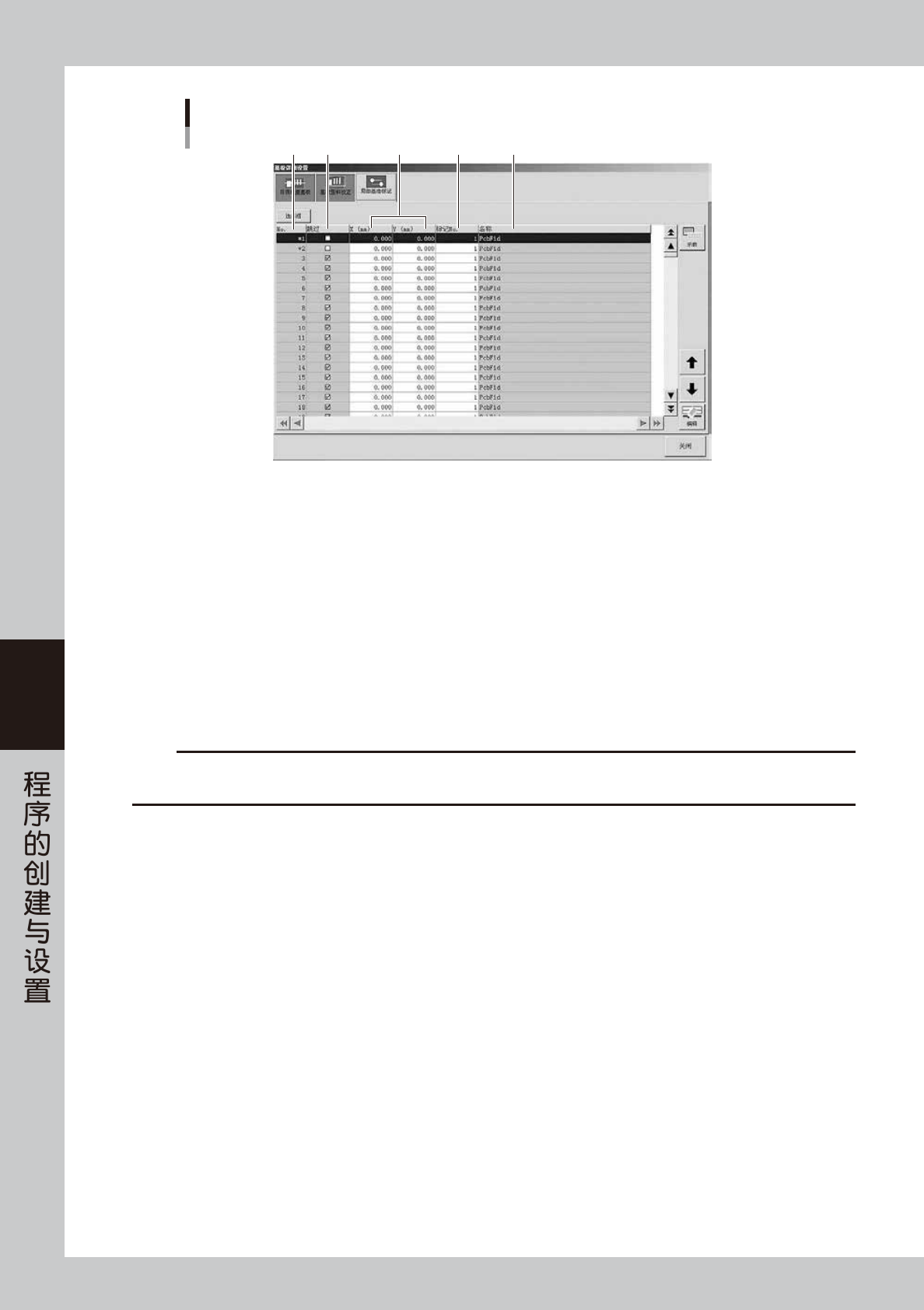 在“目视检查基板”画面,可以预先输入印刷锡膏之后准备进行目视检查的基板坐标 ( 参阅本章“9.试印刷”)。按此画面的