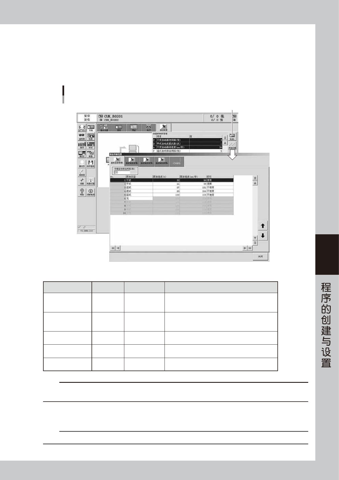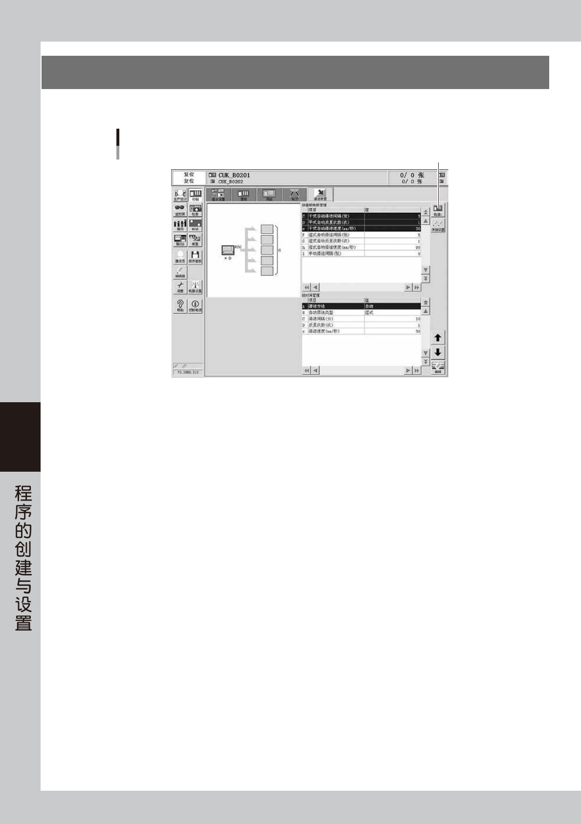 此外,如果“详细自动清洁间隔”设置为 0 时,该以后的基板张数管理选项卡的设置会全部无效。