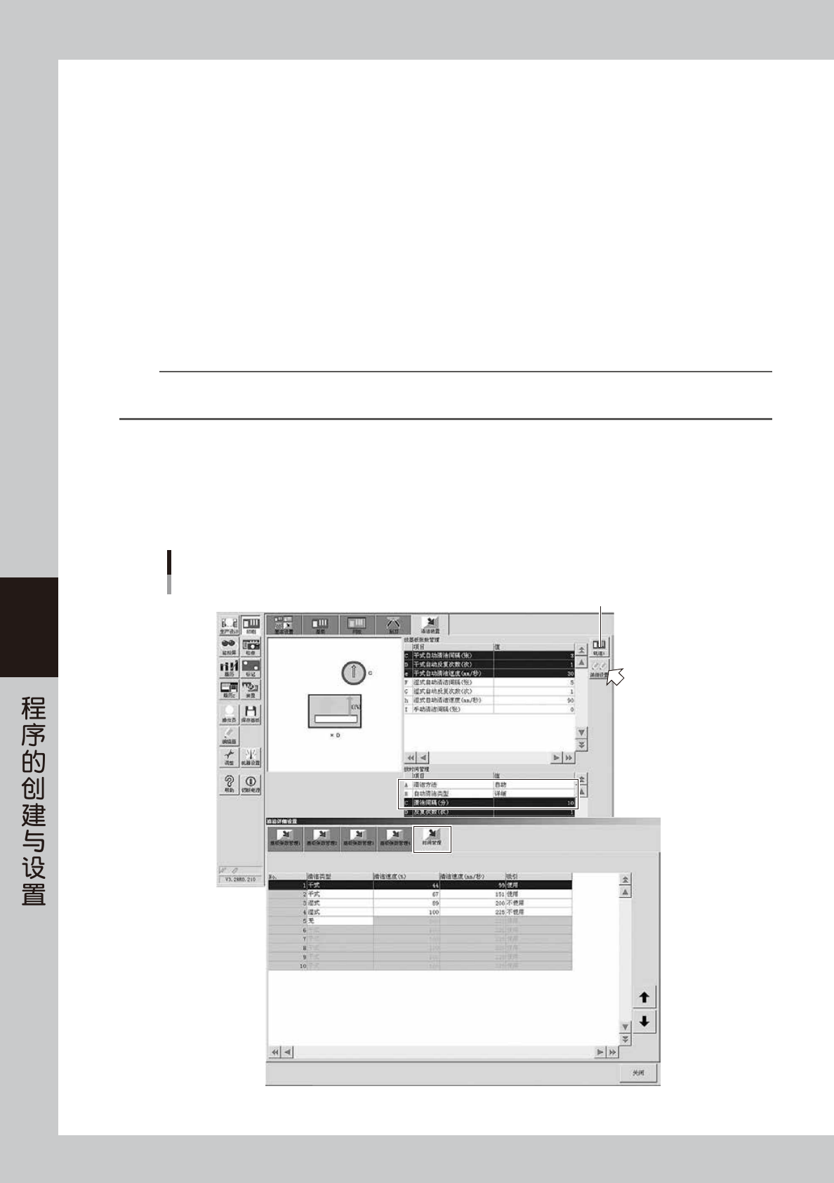 洁间隔 ( 分 )”中输入想要进行清洁的时间间隔之后,按 [ 详细设置 ] 按钮,打开“清洁详细设置”画面,选择“时间管理”