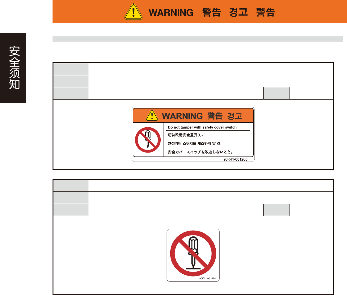 安全防范 切勿随意触摸、改造安全盖开关。切勿在解除安全盖开关的状态下运行机器。