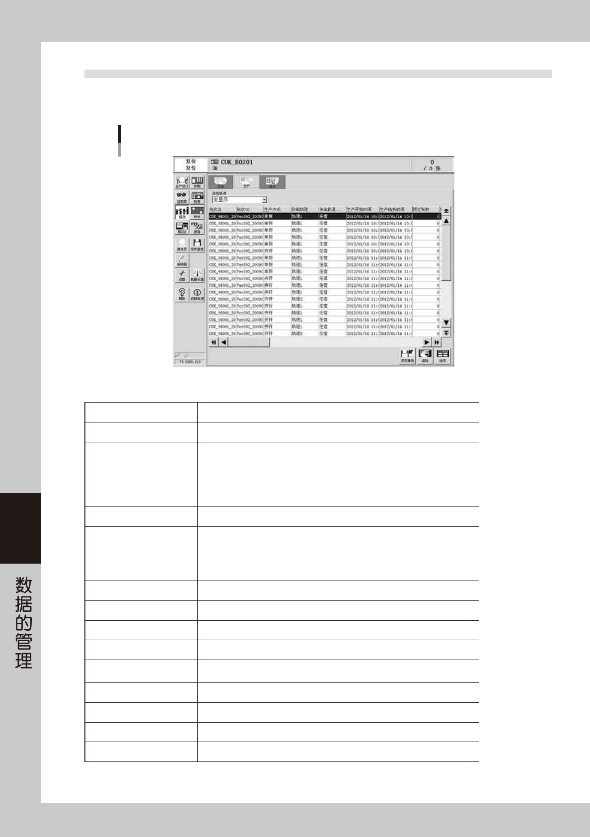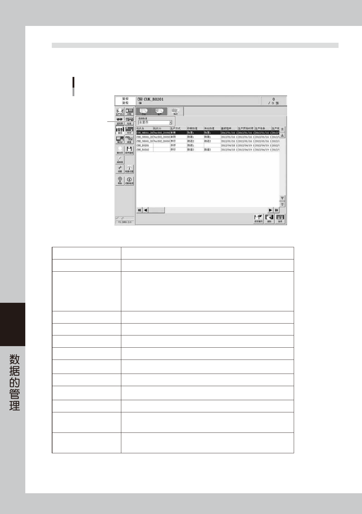 1 批基板的数据占 1 行,最多可保存 1000 行。画面右下方按钮与“日志”选项卡的功能相同。