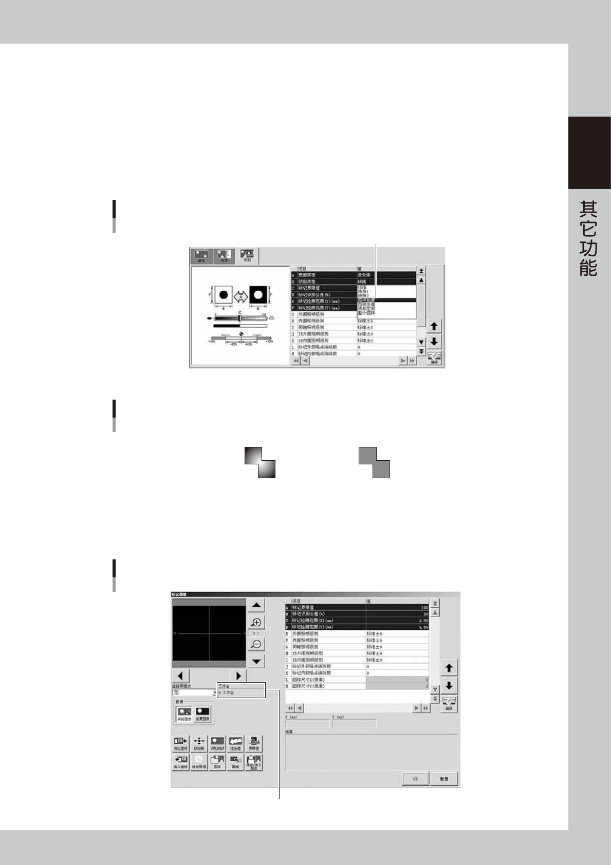 7-13 7 4 设置“识别类型” 。 打开“识别”画面,将“识别类型”设置为“图样轮廓”或“图样多值” 。 图样轮廓 : 进行图样匹配时,一般设置为图样轮廓。即使图样内部的明暗不均匀,只要该图样的轮廓 清晰,就可以识别。 图样多值 : 只有在图样内部的明暗均匀时才有效。因为必须对整个图样进行识别, 所以比“图样轮廓” 的识别时间更长,数据更大。 整个图样 : 想要详细读取整个图样时,使用此识别类型。因为必须对整个图样进行识别,数据的压…