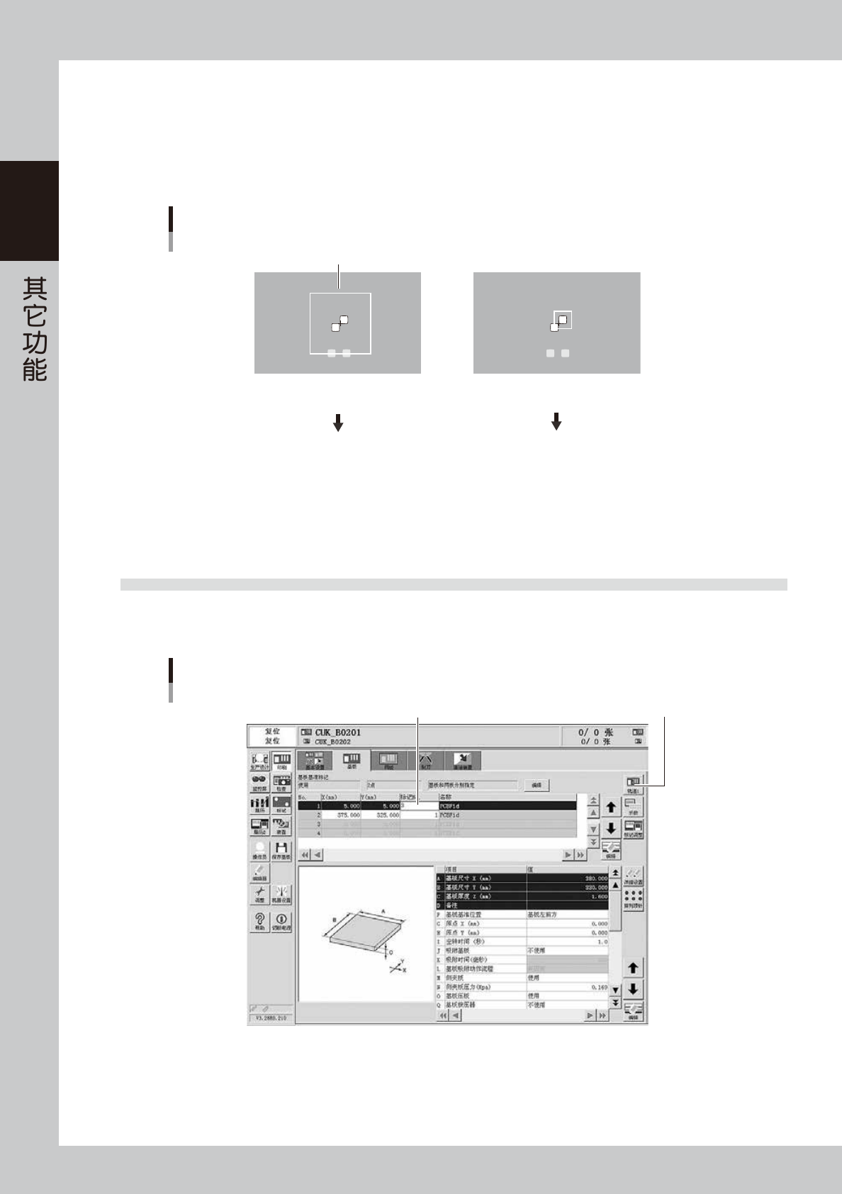 7-16 7 t 执行识别测试。 按 [ 识别测试 ] 按钮,确认是否能够正确识别图样。反复进行识别测试,直至没有错误发生。 如果发生了识别错误,需确认识别参数画面的“标记界限值”( 参阅前述第 5 章“7.5 进行标记调整”) 与 “标记检测范围”的设置是否适当。如下图所示, 左图因标记的检测范围过大, 其它标记也进入了识别范围, 此时需缩小检测范围。相反,右图因标记的检测范围过小,标记越出了识别范围,此时需扩大检测范围。 标记检测范…