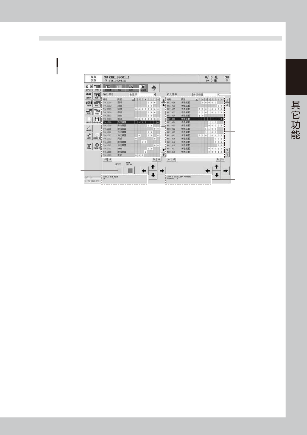 在 [ 装置 ] -“I/O”画面,可以确认 I/O 信号状态,打开或关闭输出信号。下面,介绍该画面的使用方法。