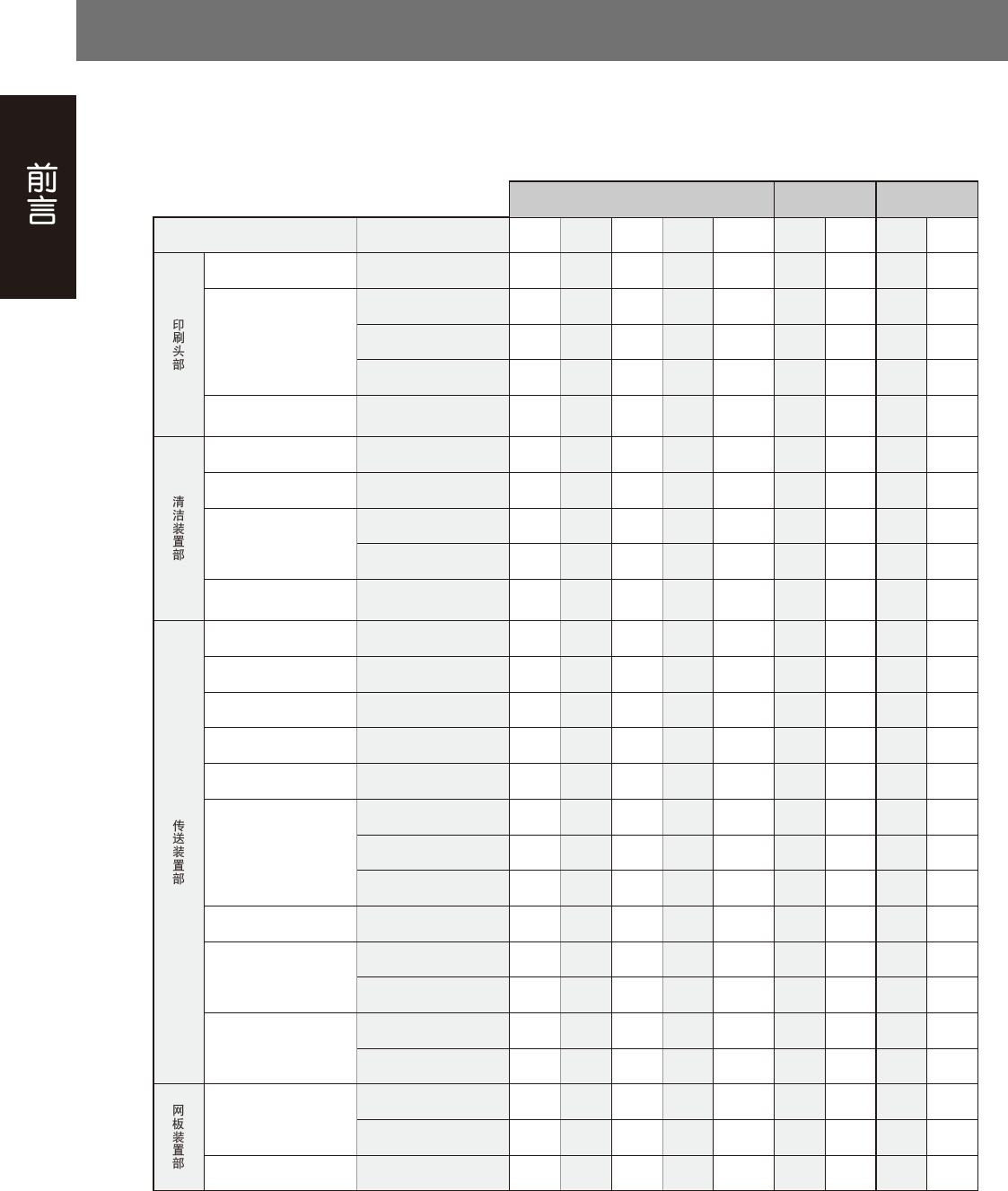 iii 点检 清洁、加油 更换 部位 对象 每周 每月 3M 6M 故障时 清洁 加油 周期 处理 X,Y X轴 滚珠丝杆 ● ○ ○ - △ 导轨 ● ○ ○ - △ Y轴 滚珠丝杆 ● ○ ○ - △ 导轨 ● ○ ○ - △ 网板用相机 照明镜头是否脏污 照明的亮灯状态 ● ● - - △ 基板用相机 照明的亮灯状态 ● ● - - △ 检查用相机 ( 选配 ) 照明的亮灯状态 ● ● - - △ 气、雾过滤器 过滤器 ● ●…