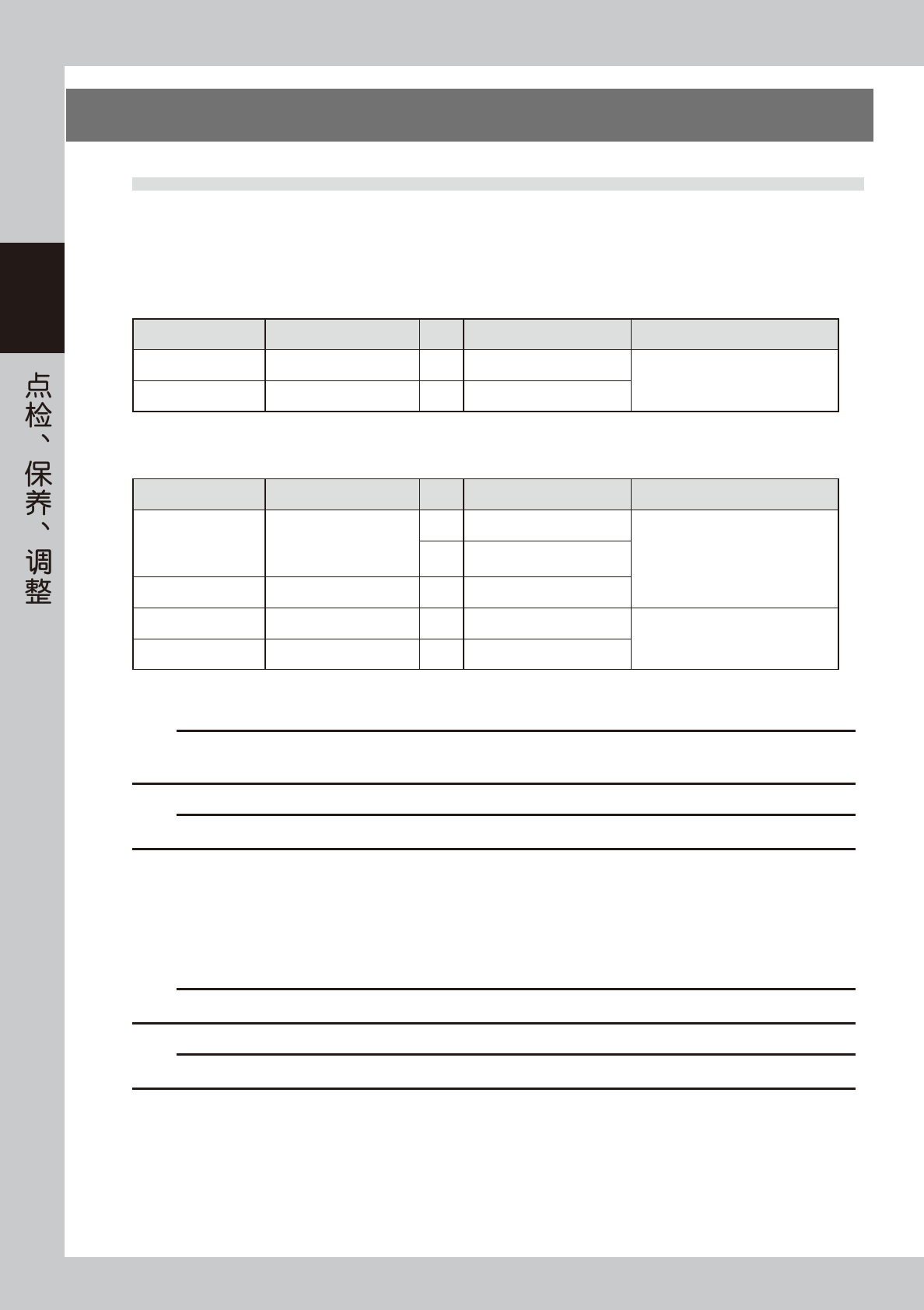 进行定期点检时,建议使用点检表。点检表的内容为每周或每月必须点检的内容,不包含本章前述“日常点检”