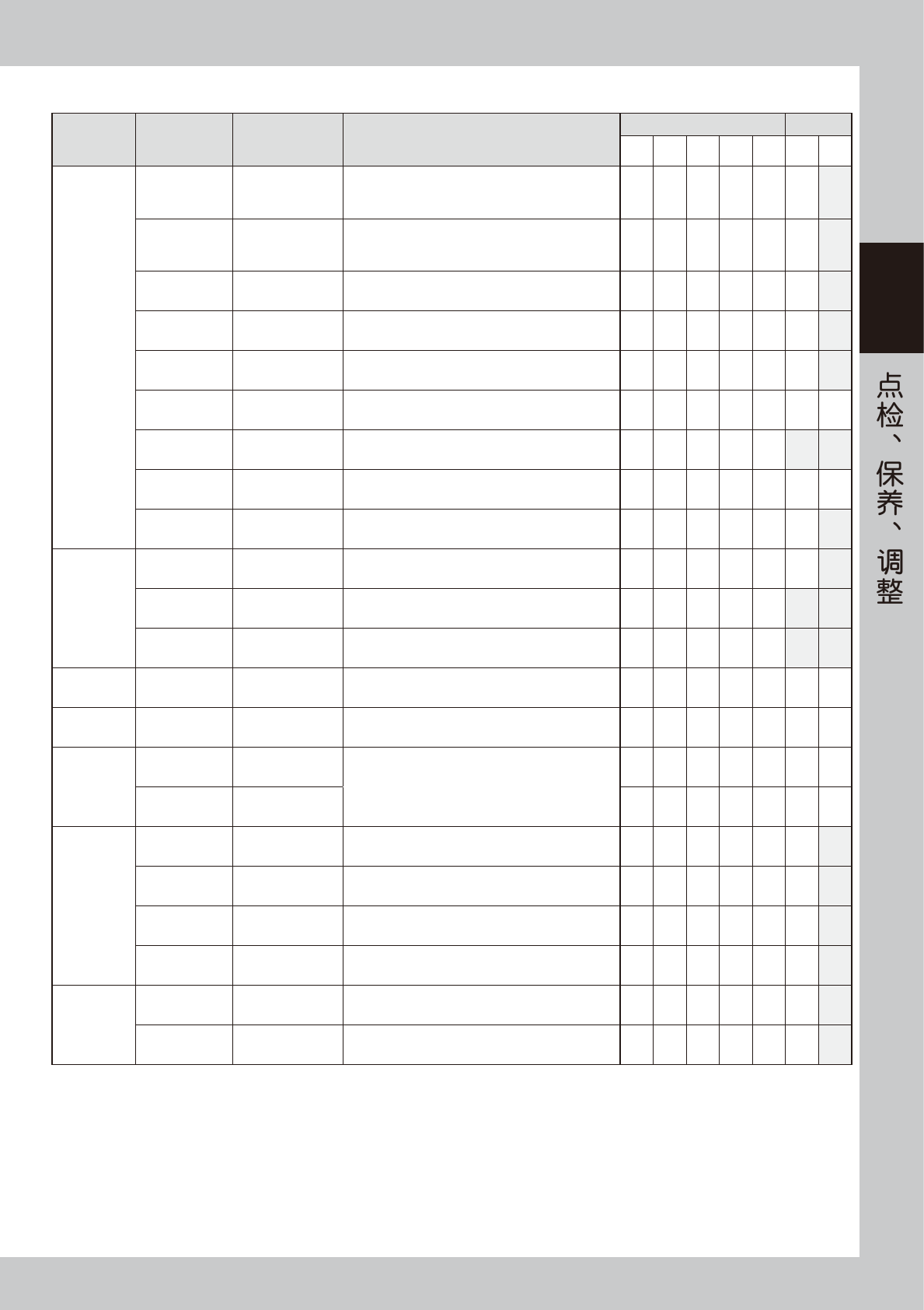 进行定期点检时,建议使用点检表。点检表的内容为每周或每月必须点检的内容,不包含本章前述“日常点检”