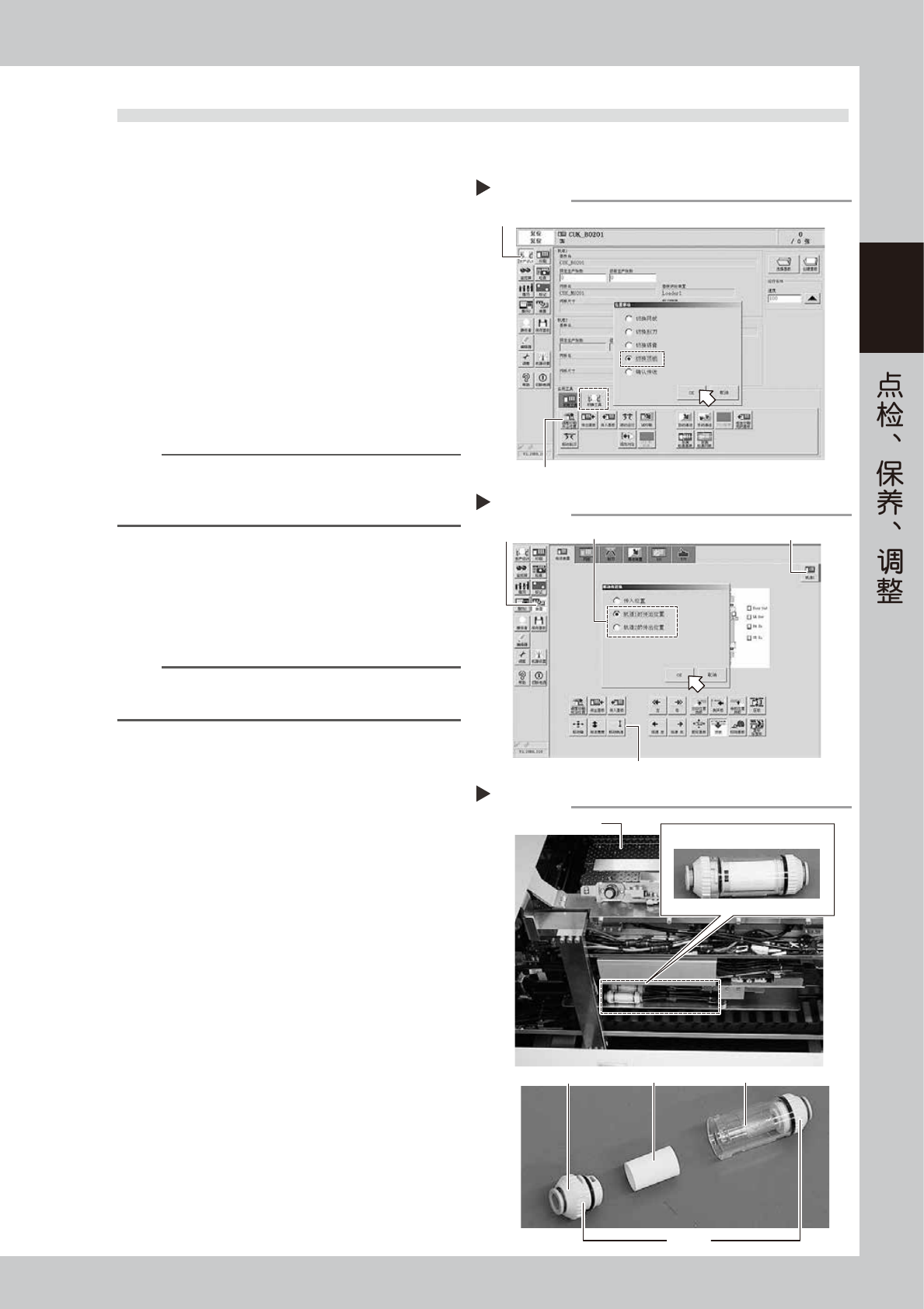 在此,以轨道 1 的过滤器为例介绍清洁与更换滤芯的方法。