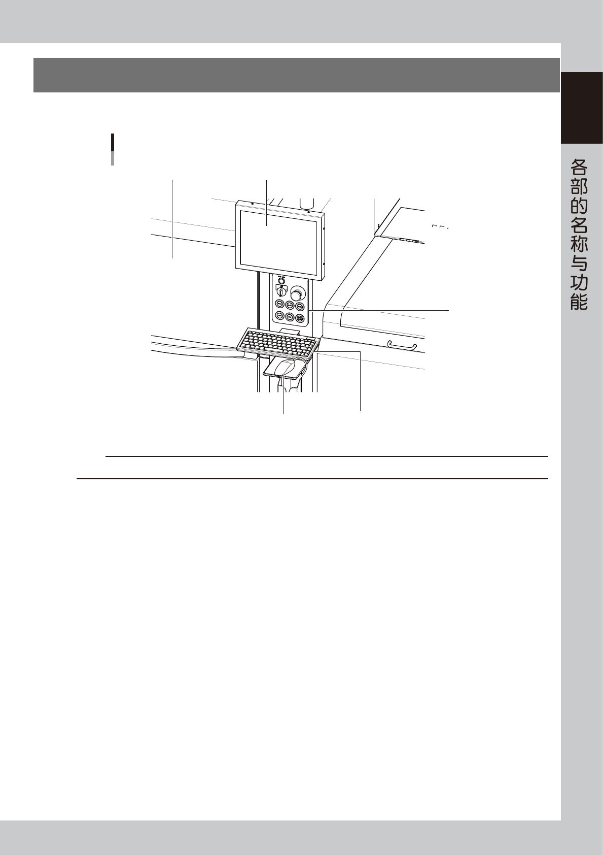 本机正面和背面配有操作机器和输入数据用的显示屏、操作面板按钮、键盘、鼠标等装备。