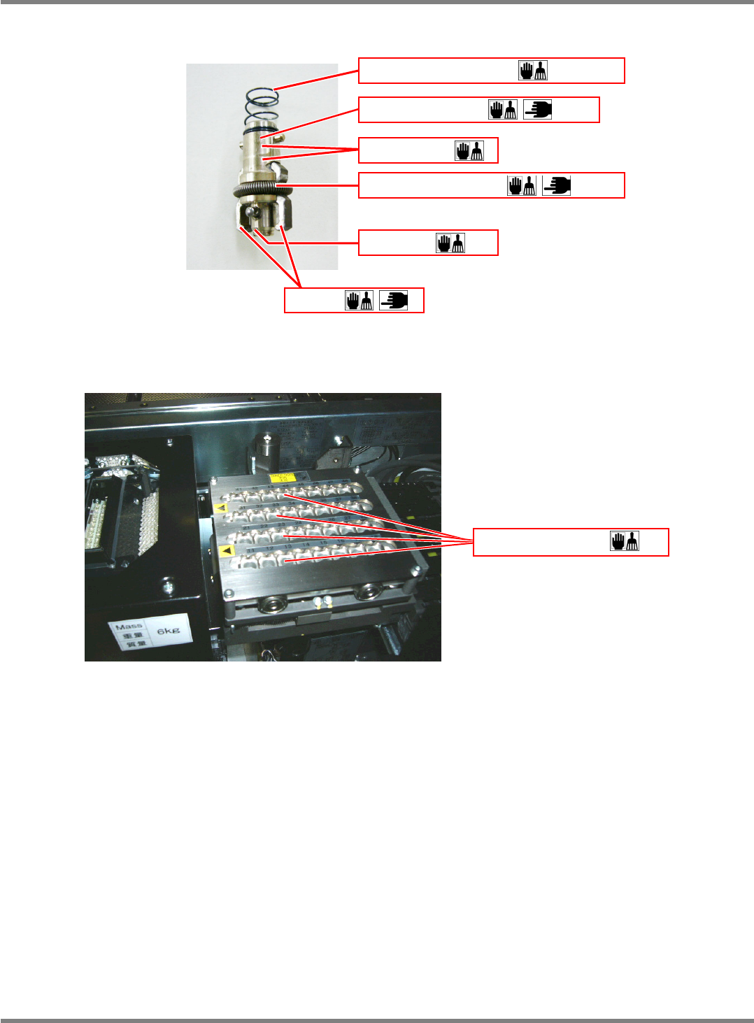NPM-D 维修篇 1.5 各装置的定期检查项目 EJM1DC-MB-01M -00 Page 1-29 3. 吸嘴座 4. 吸嘴交换器 ( 选购件 ) 吸嘴反射板接触面 EJM4A-074P 夹具爪压紧弹簧 内外周边部位 吸嘴缓冲弹簧 锥形面 夹具爪 吸嘴座滑动面