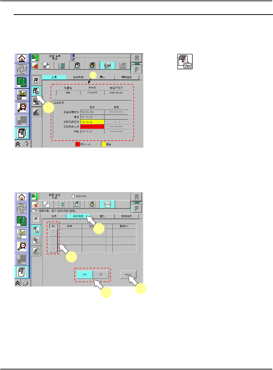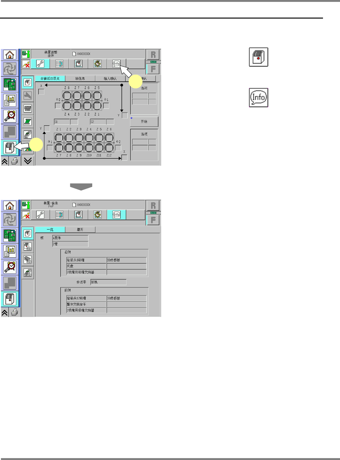 NPM-D 维修篇 1.7 机器信息 Page 1-42 EJM1DC-MB-01M-00 1.7 机器信息 在 [ 机器信息 ] 上,可以确认相关本机的各种信息。 1 按主菜单画面的 。 2 按子菜单画面的 。 UnitVerPnPList-01C 00 UnitAdjustAxisOrigin-01C00 1 2
