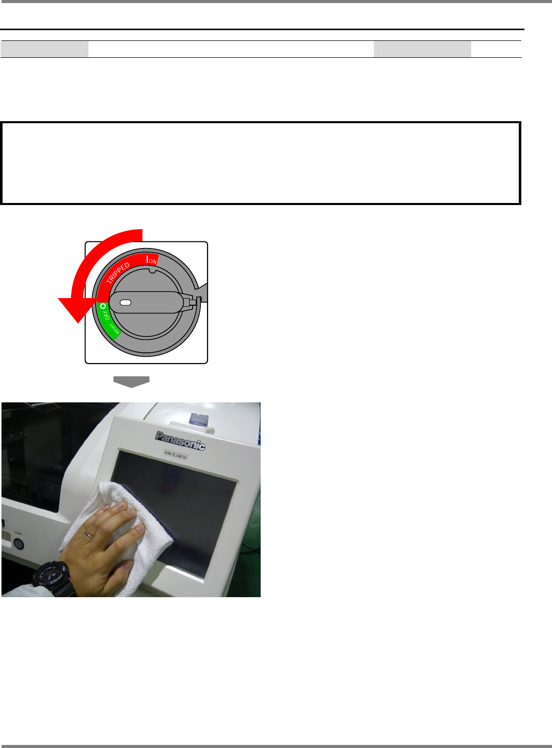 NPM-D 维修篇 4.1 彩色接触面板的清扫 Page 4-2 EJM1DC-MB-04M-00 4.1 彩色接触面板的清扫 使用工具 棉纱布等 需要时间 [min] 1 请对彩色接触面板进行清扫。 彩色接触面板上附着污垢是发生错误 动作的主要原因。 ∗ 对彩色接触面板除每周清扫一次以外 ,还应随时进行清扫。 要求 接触面板的盖是树脂制品。 清扫时如果使用酒精、 稀料、 中性洗剂的原液、 各种清洁剂 ( 溶剂 ) 等, 这是造成裂纹 …