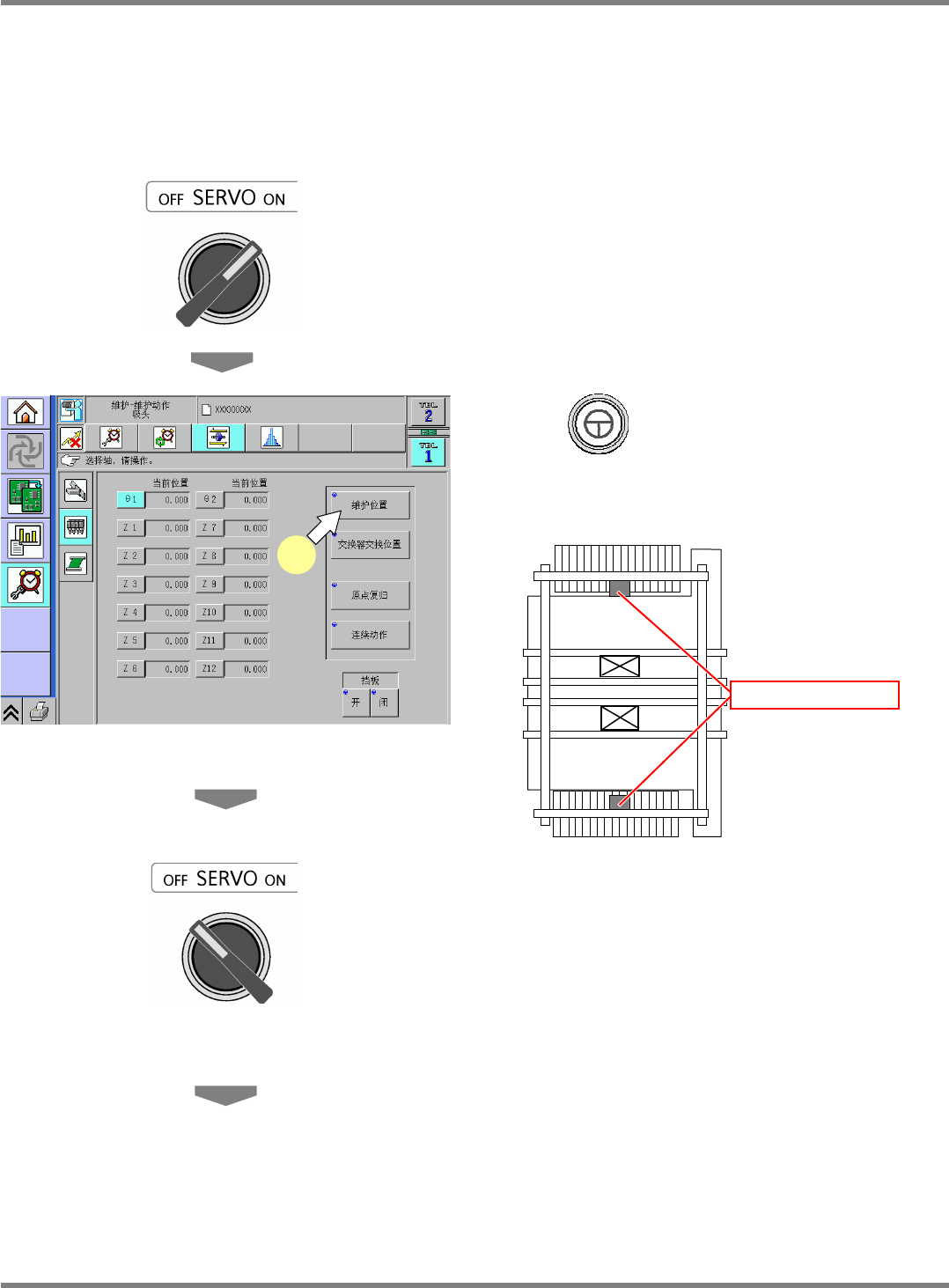 NPM-D 维修篇 4.2 吸嘴座的清扫 Page 4-6 EJM1DC-MB-04M-00 2. 拆卸 A) 把吸嘴座从移载吸头上卸下 使用 < 维护动作 > 画面,把移载吸头移动到吸嘴交 换作业位置上。然后请把吸 嘴座卸下。 如果设置有吸嘴交换器 ( 选购件 ) ,请在此卸下吸嘴 ( 选购件 ) 。 1 确认安全盖是否是关着的。 然后将伺服 开关置于 ON 。 2 按 + [ 维护位置 ] 。 • 吸头将会移动到维护位置…