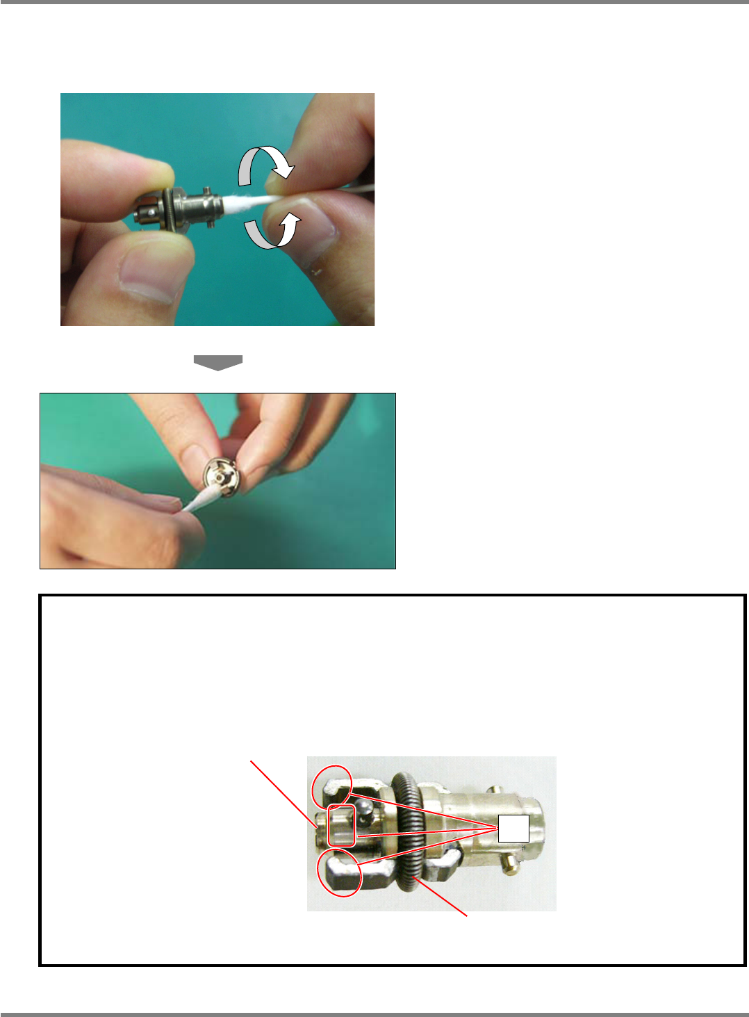 如果用棉棒擦拭吸嘴座尖端部,有引起过滤器被污垢堵塞的危险。另外,擦拭夹具爪