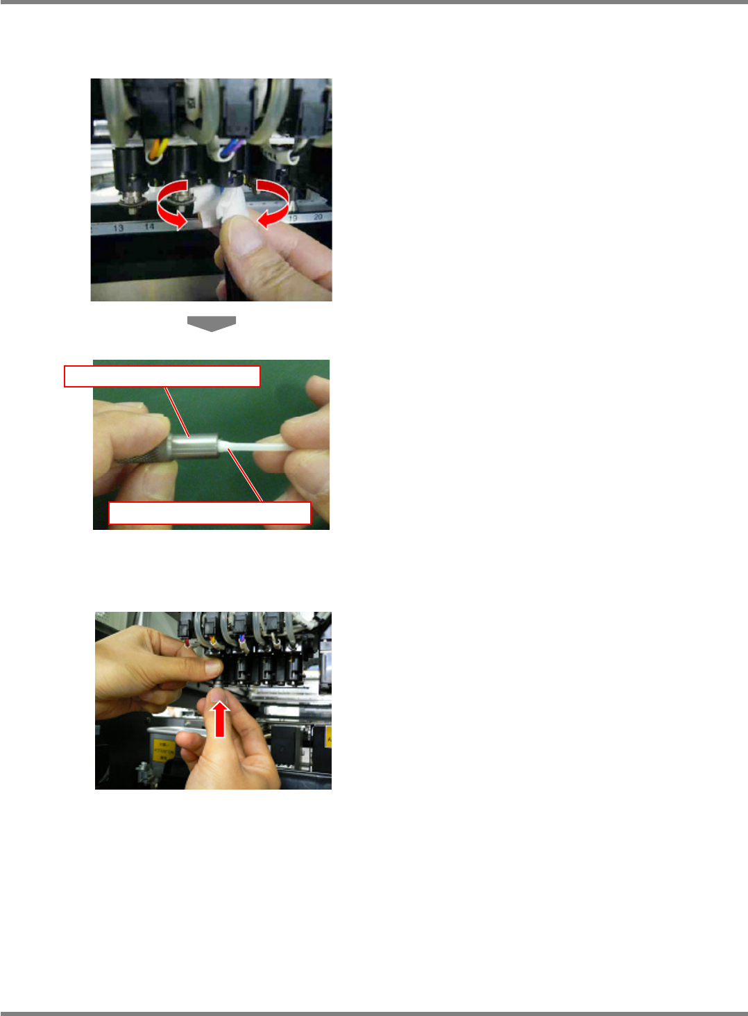 将吸嘴座轴清扫用工具插进轴后,向吸