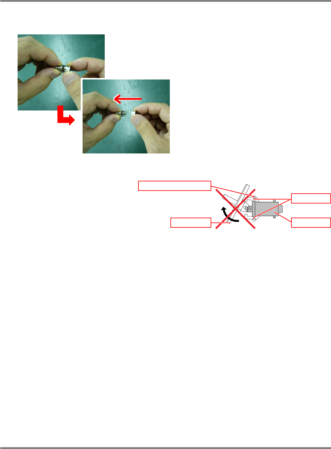 NPM-D 维修篇 5.5 吸嘴 ( 选购件 ) 和吸嘴交换器 ( 选购件 ) 的清扫 Page 5-24 EJM1DC-MB-05M-00 3. 清扫 A) 清扫吸嘴 通知 为了稳定地吸着芯片, 应对吸嘴尖端的磨损、 变形状况进行确认。 当吸嘴的尖端部位出 现下图所示状态时,有必要更换吸嘴。请在清扫吸嘴时进行确认。 吸嘴尖端的磨损 吸嘴尖端的破裂 4X3C-405E 4X3C-406E 1 用气枪吹掉吸嘴空气路径上的灰尘。 ∗ 请对着…