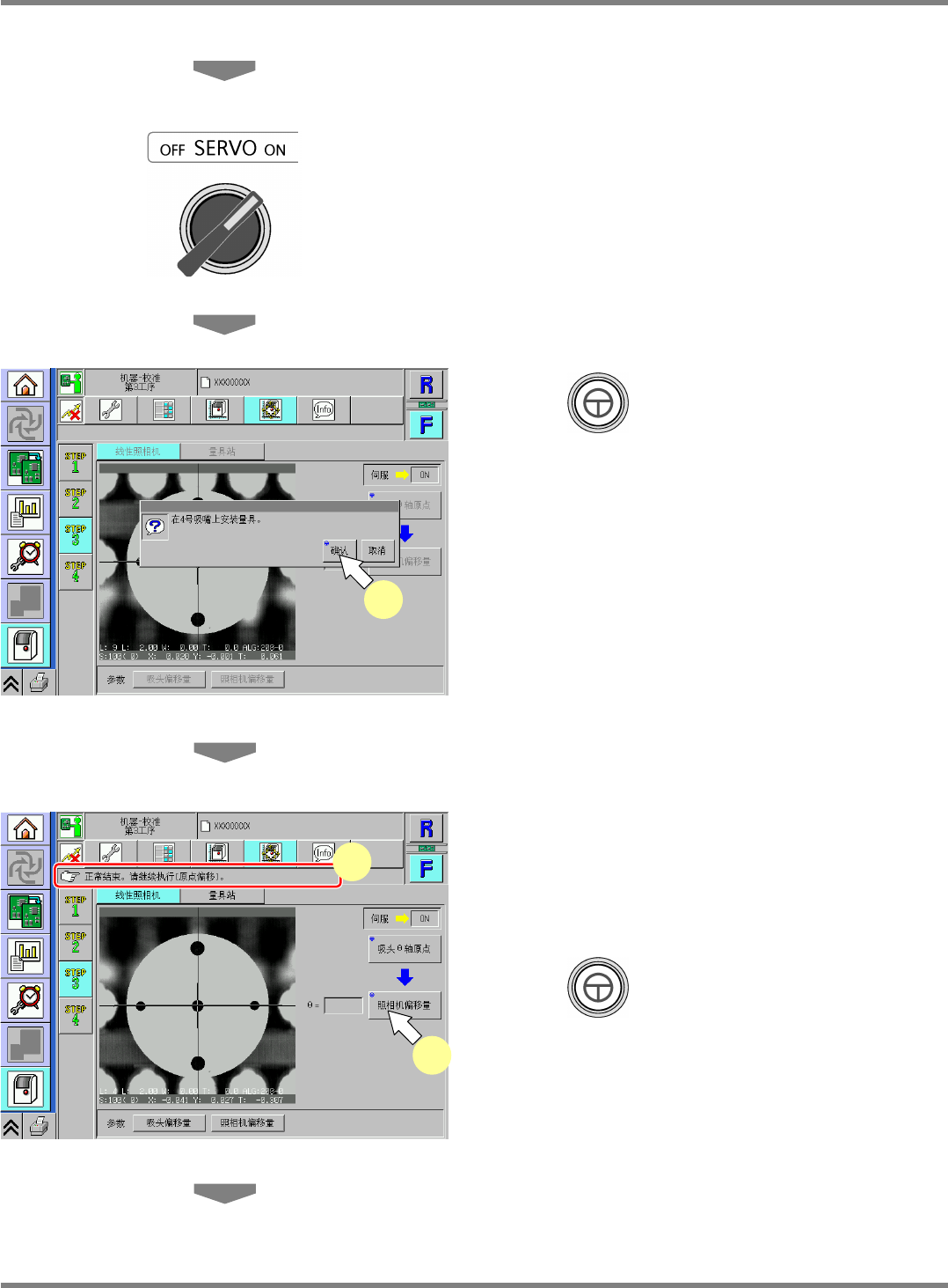 NPM-D 维修篇 9.9 线性照相机 EJM1DC-MB-09M -00 Page 9-63 26 按 + [ 确认 ] 。 • 吸头将会移动到作业位置。 27 确认线性照相机量具。 16 吸嘴吸头 ∗ 请确认线性照相机量具是否安装在吸 嘴位置 5 上。 12 吸嘴吸头 ∗ 请确认线性照相机量具是否安装在吸 嘴位置 4 上。 8 吸嘴吸头 ∗ 请确认线性照相机量具是否安装在吸 嘴位置 3 上。 2 吸嘴吸头 ∗ 请确认线性照相机量具是…