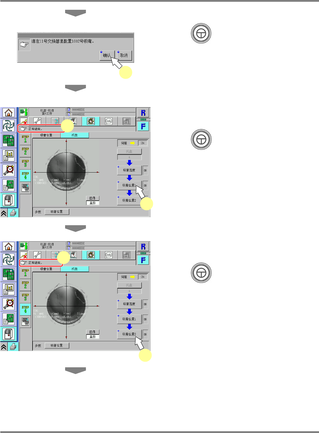 NPM-D 维修篇 9.18 托盘 EJM1DC-MB-09M -00 Page 9-103 9.18 托盘 是安装托盘供料器时的操作。 该操作只适用于 8 吸嘴吸头以及 2 吸嘴吸头。 请从后侧操作。 1 按 。 2 按 [ 托盘 ] 。 3 按 + [ 吸着高度 ] 。 4 将伺服开关置于 OFF 。 5 打开安全盖。 6 安装吸嘴。 8 吸嘴吸头 ∗ 请在吸嘴交换器 11 上安装 230C 吸嘴。 2 吸嘴吸头 ∗ 请在吸嘴交换器…