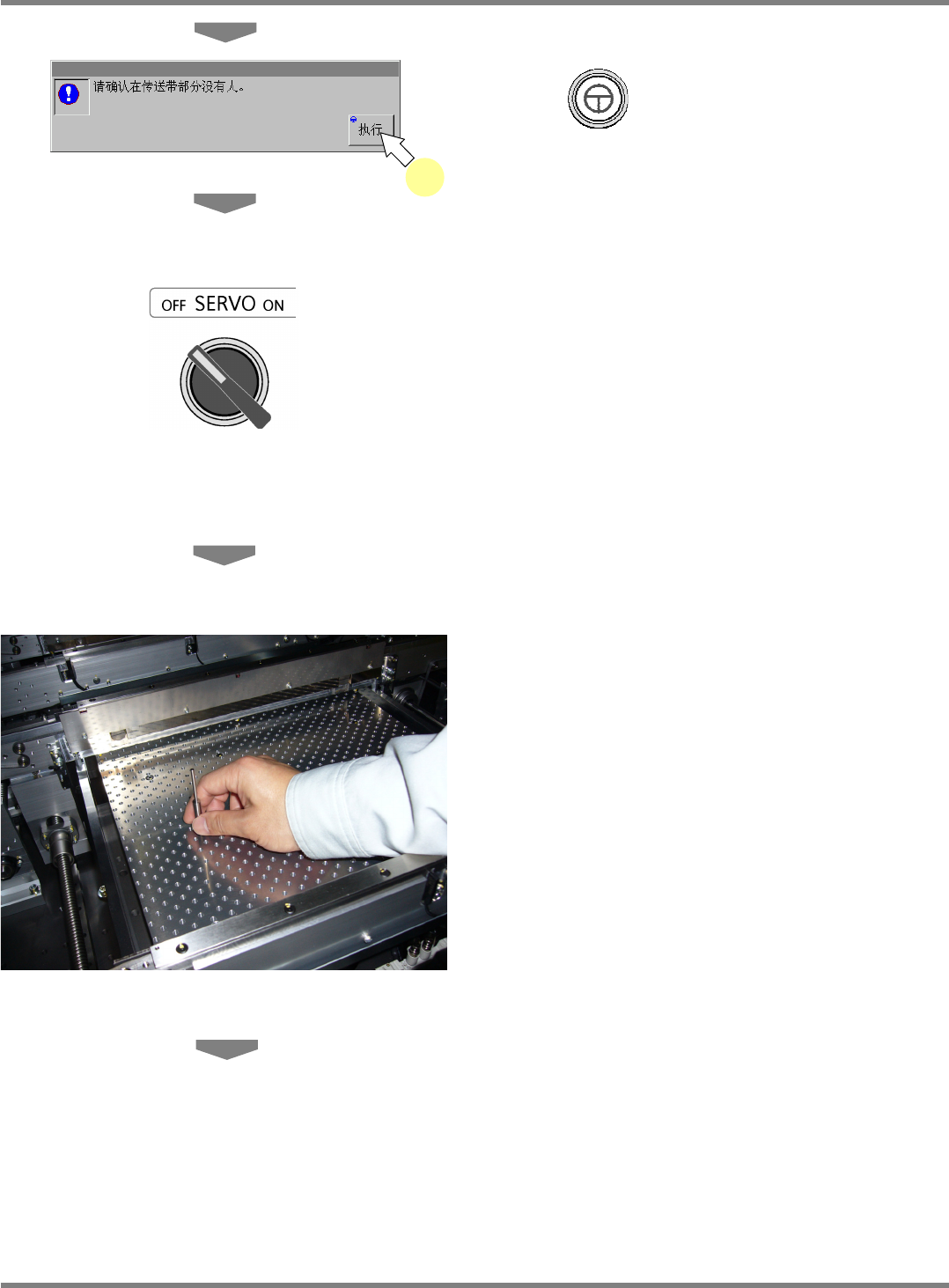 NPM-D 维修篇 10.4 双式传送带切换为单轨模式 EJM1DC-MB-10M -00 Page 10-15 10.4 双式传送带切换为单轨模式 NPM-D 的基板传送带可通过模式的 切换,用于双式和单式两种 用途。请按以下顺序切换模 式。 此外,切换 NPM-D 主体基板传送带模式时,相邻 的 NPM-D 传送带也会联动切换模式。 切换准备 ① 卸下基板支撑销 ∗ 基板支撑销的卸下作业应在设备前侧 进行。 1 按 。 2 按 …