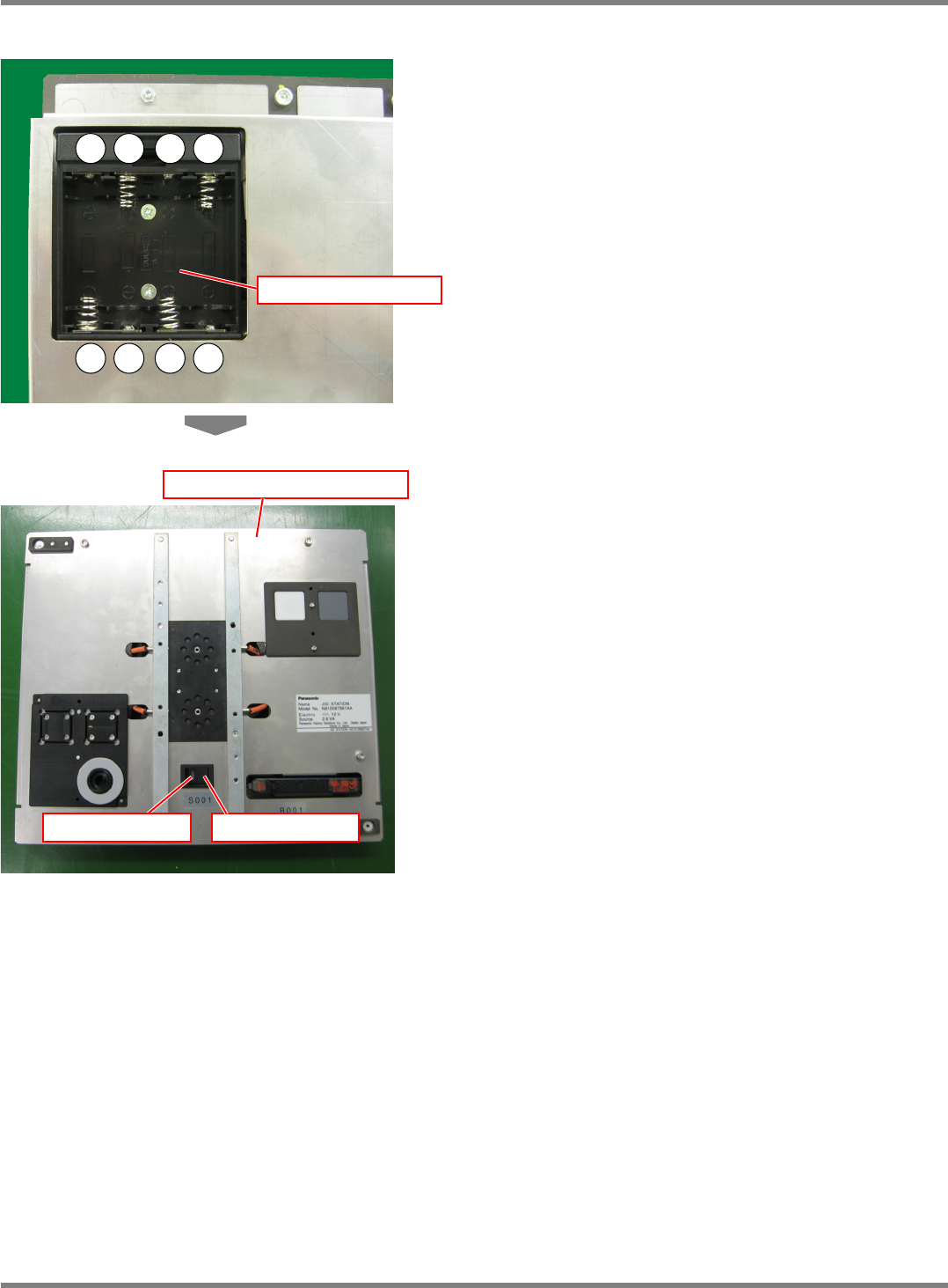 NPM-D 维修篇 11.3 蓄电池的更换 EJM1DC-MB-11M -00 Page 11-17 3 量具站蓄电池的更换 量具站使用 8 个 (4 个× 2 处 )AA 碱性干电池。 電电池快用完时,电源开关的 LED 照明亮不起来。请按照下述顺序 更换电池。 ∗ 在通常状态下电源 ON 时, LED 照明会亮起。 1 将电源开关置于 OFF 。 2 打开治具站背面的电池箱 (2 处 ) 的 盖。 量具站 ( 背面 ) 电池箱 量具…