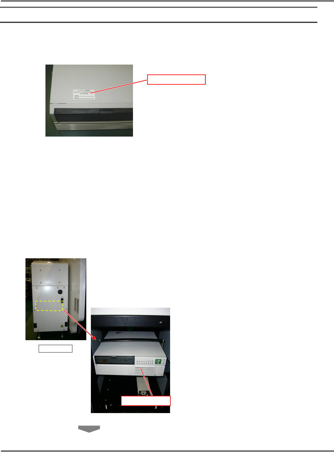 NPM-D 维修篇 11.3 蓄电池的更换 Page 11-20 EJM1DC-MB-11M-00 5 FA 电脑 (LNB 传送带或传送带 L) 的 UPS 的更换 UPS 蓄电池有使用寿命。 ( 约 6 年。 ) 当接近蓄电池的寿命期限时, 在 NPM-D 设备主体的监视器画面上会显示出已 到交换时期的警告信 息。 ( 连接到该 LNB 传送带或传送带 L 的所有 NPM-D 都显示。 ) 另外,请参考蓄电池更换时间的 标贴上的日期…